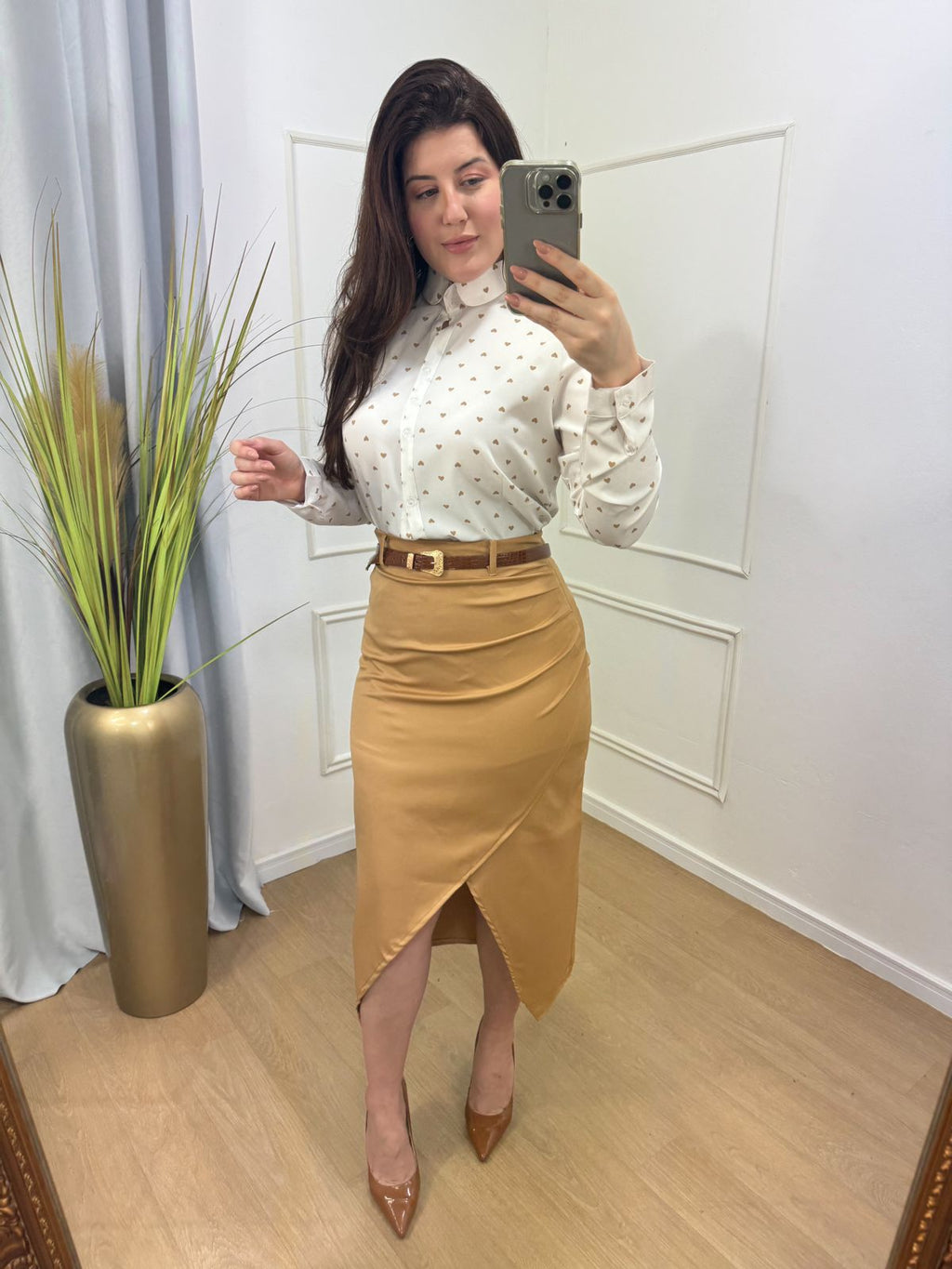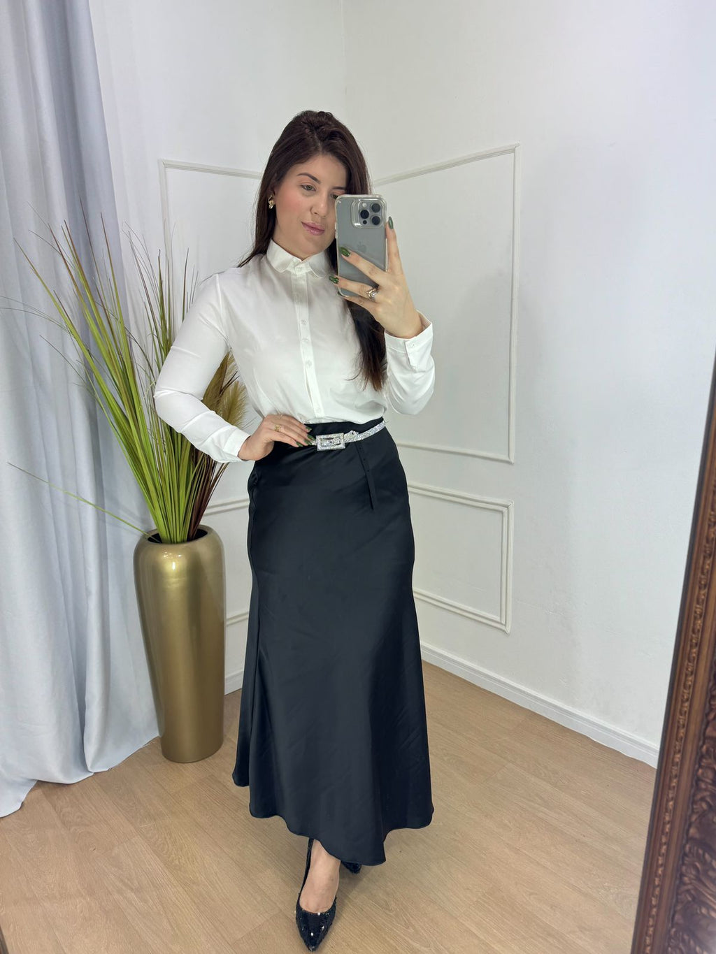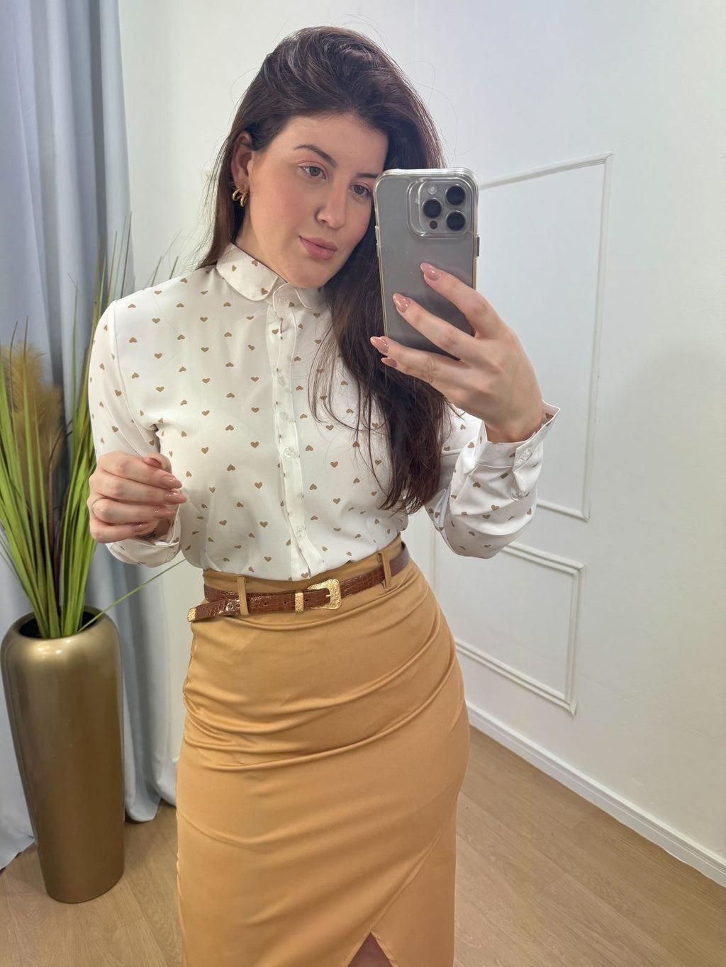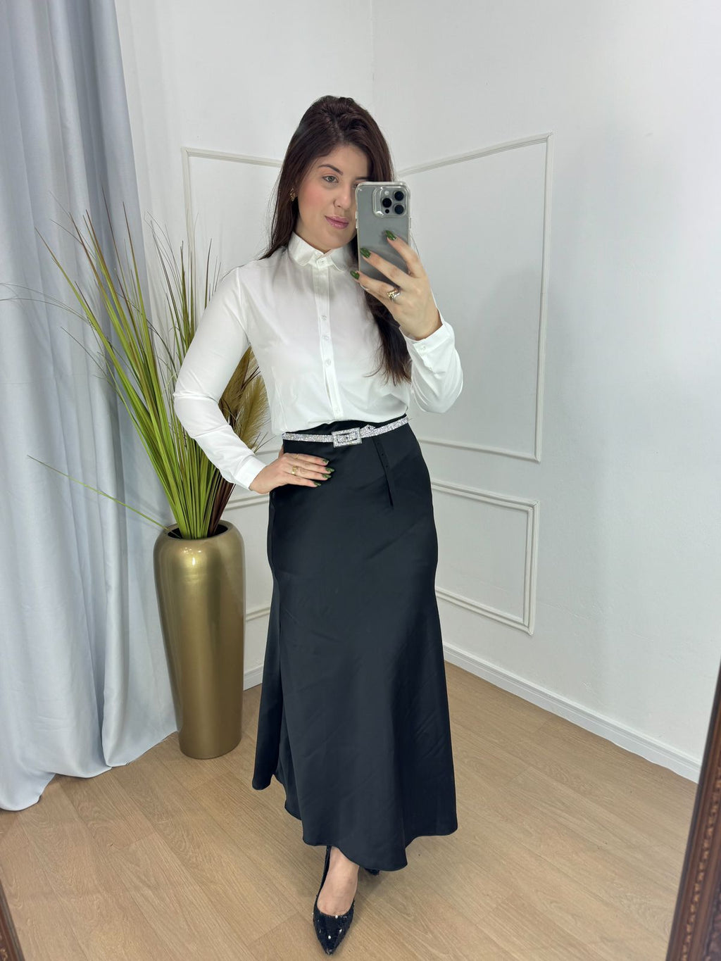Descrição: camisa em botões no crepe possui pé de gola , punho.