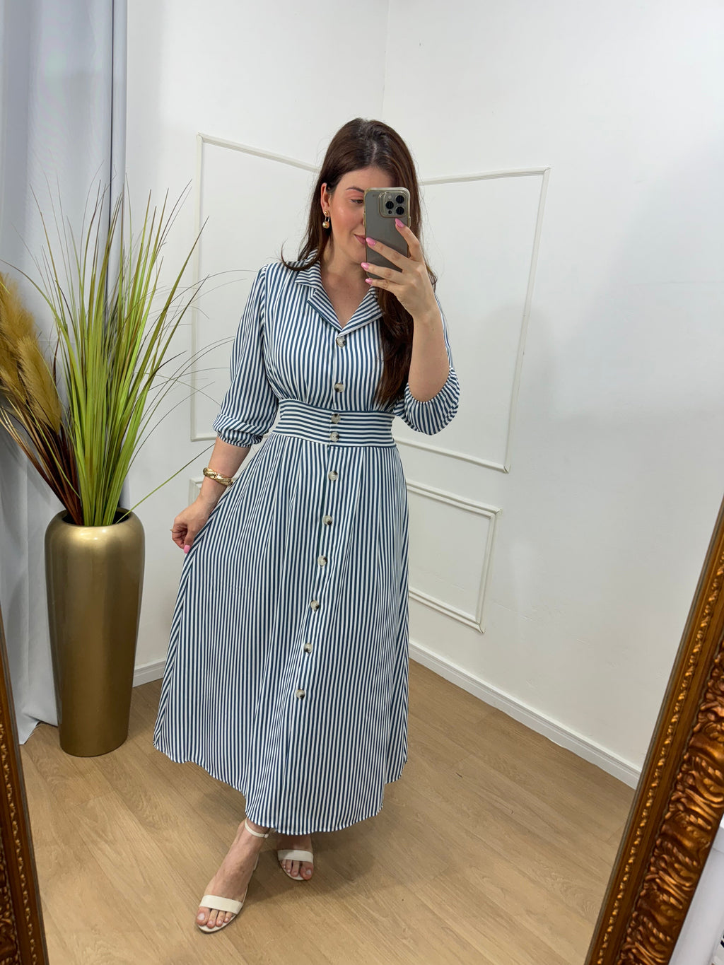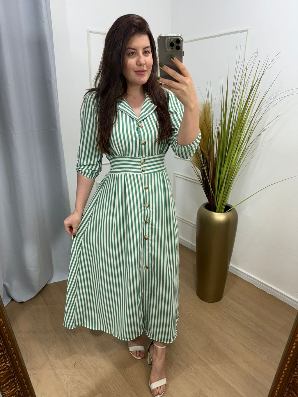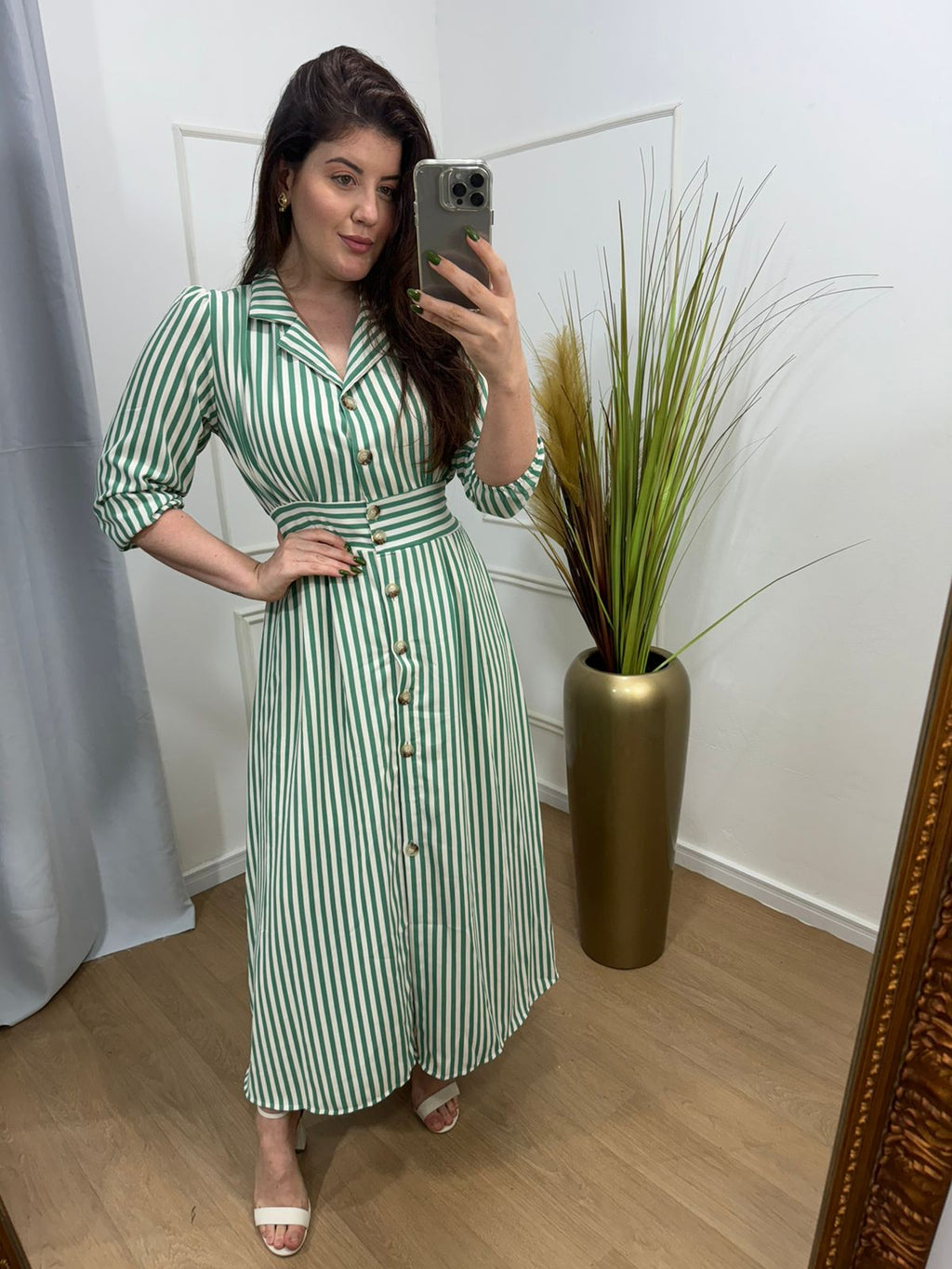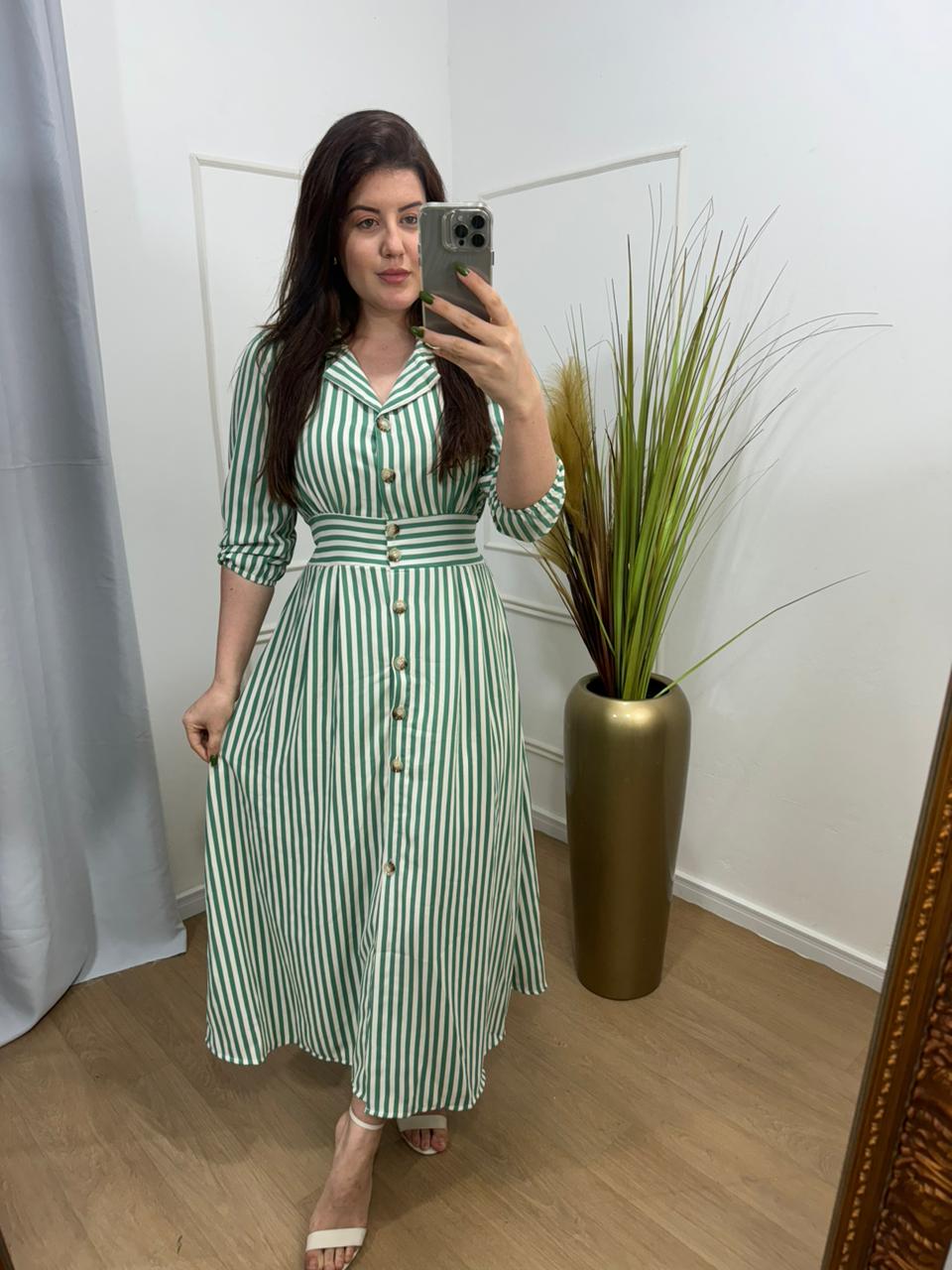 Descrição: vestido no crepe alfaitaria todo em botões manga com elástico um verdadeiro charme.