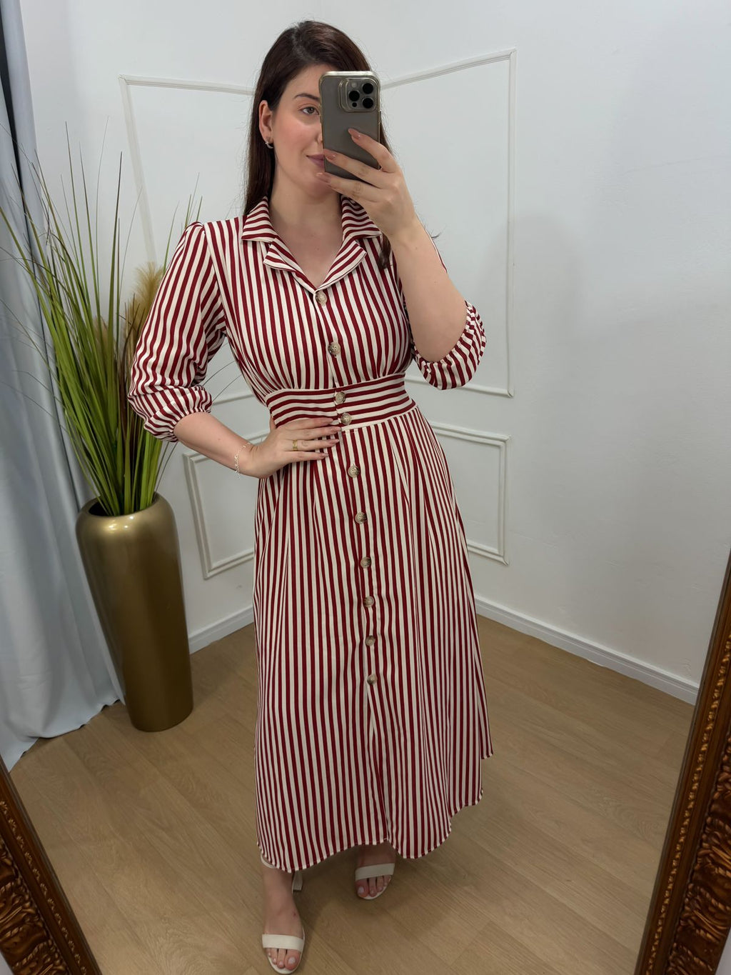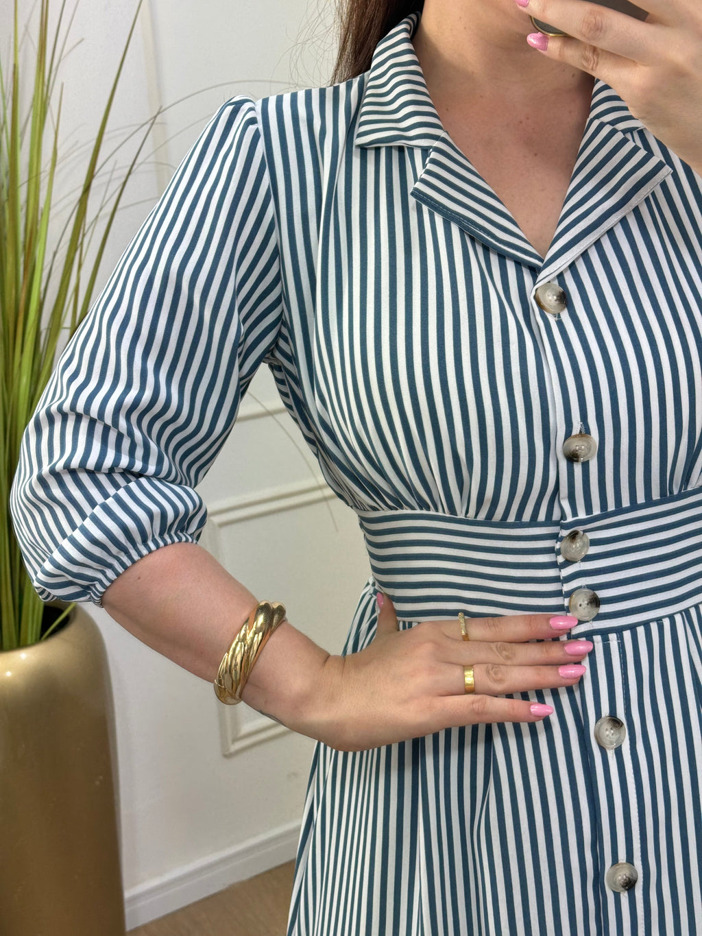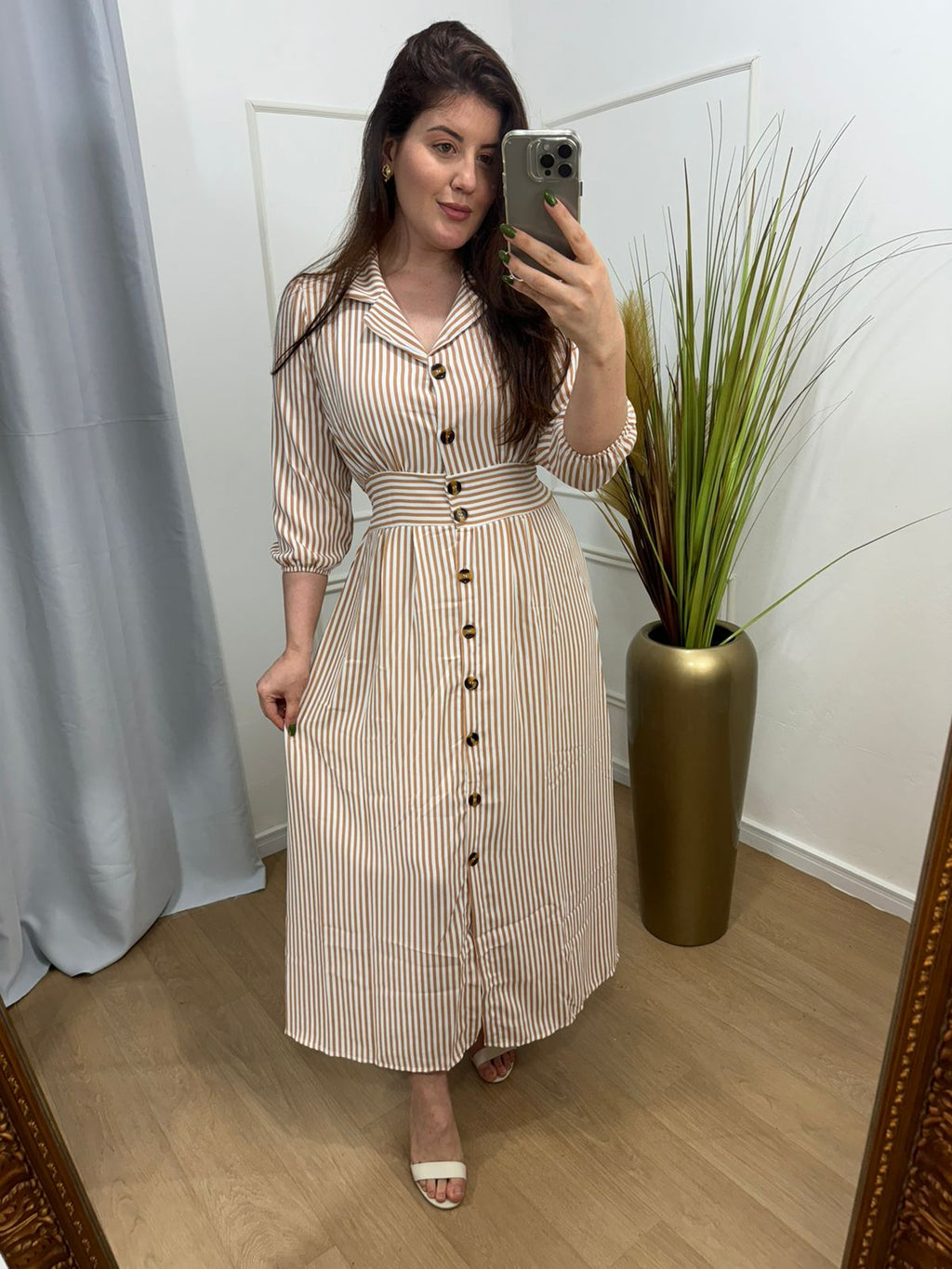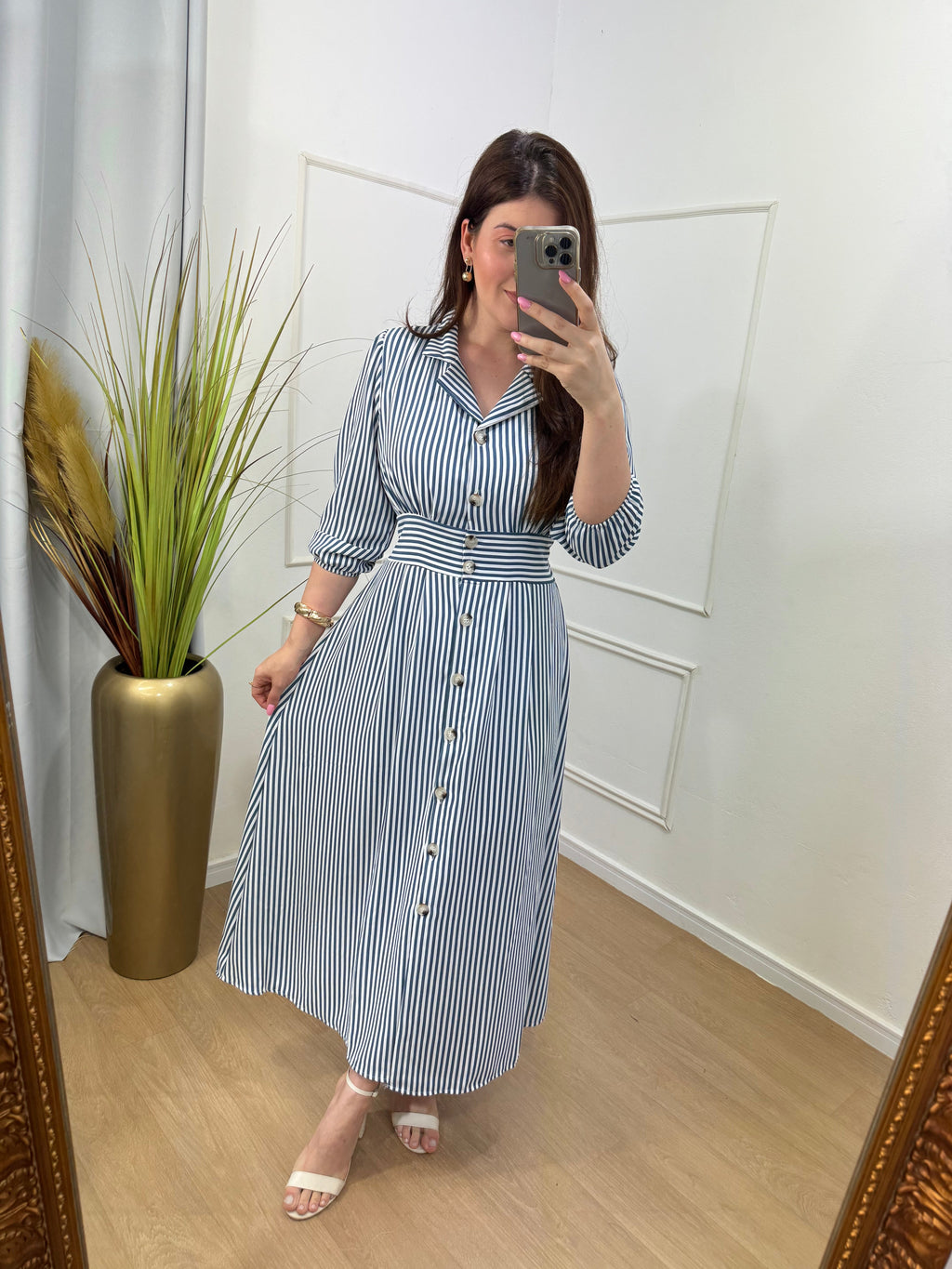 Descrição: vestido no crepe alfaitaria todo em botões manga com elástico um verdadeiro charme.