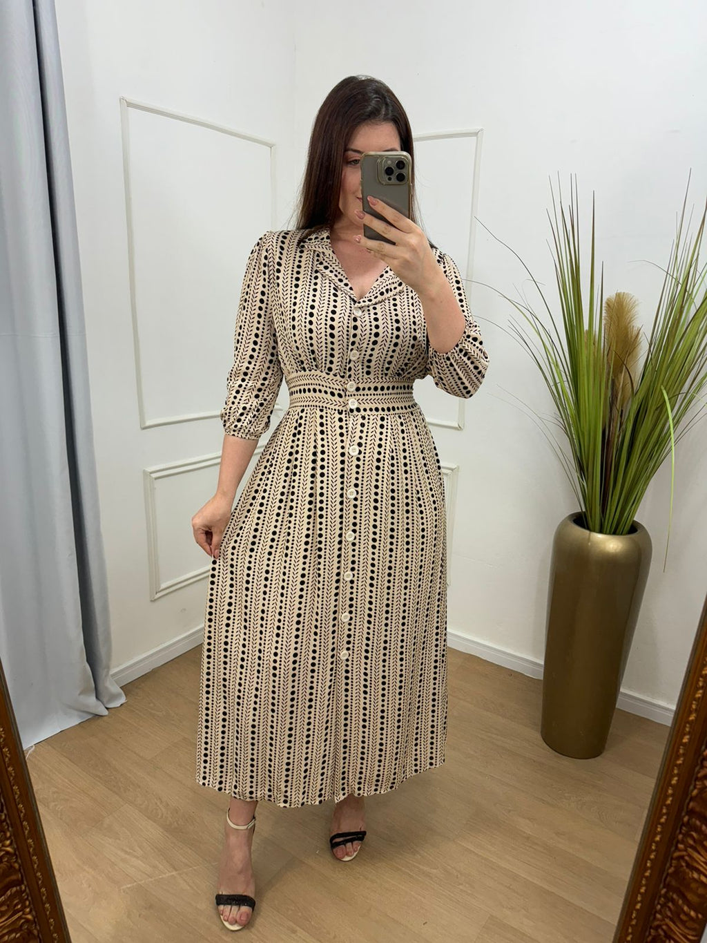 vestido no viscolinho forrado, todo em botões manga com elástico um verdadeiro charme.