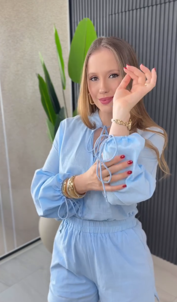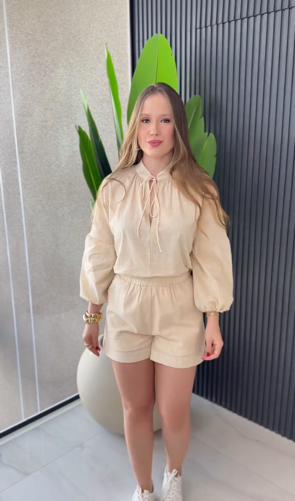 Conjunto Amsterdan em linho puro, perfeito para dias quentes e ocasiões descontraídas. Tecido respirável e leve proporciona conforto máximo, enquanto o design elegante funciona tanto para passeios quanto para encontros informais. Durável e fácil de cuidar, é a peça versátil que faltava no seu guarda-roupa.
