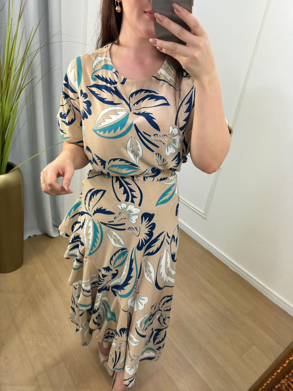 Descrição: conjunto no viscolinho , possui forro na saia que é transpassada , ela possui muito tecido fluida e fica bem fechada.