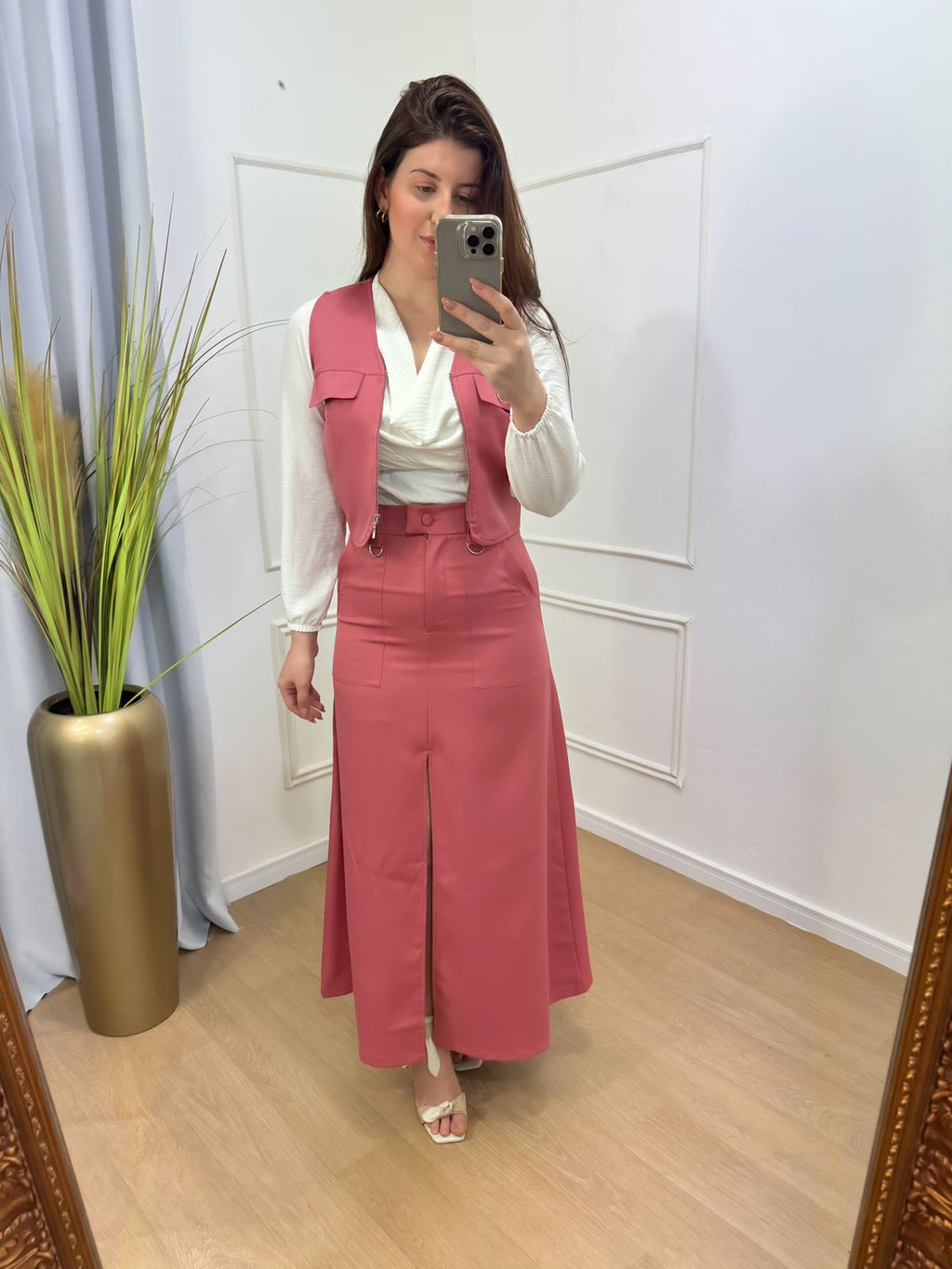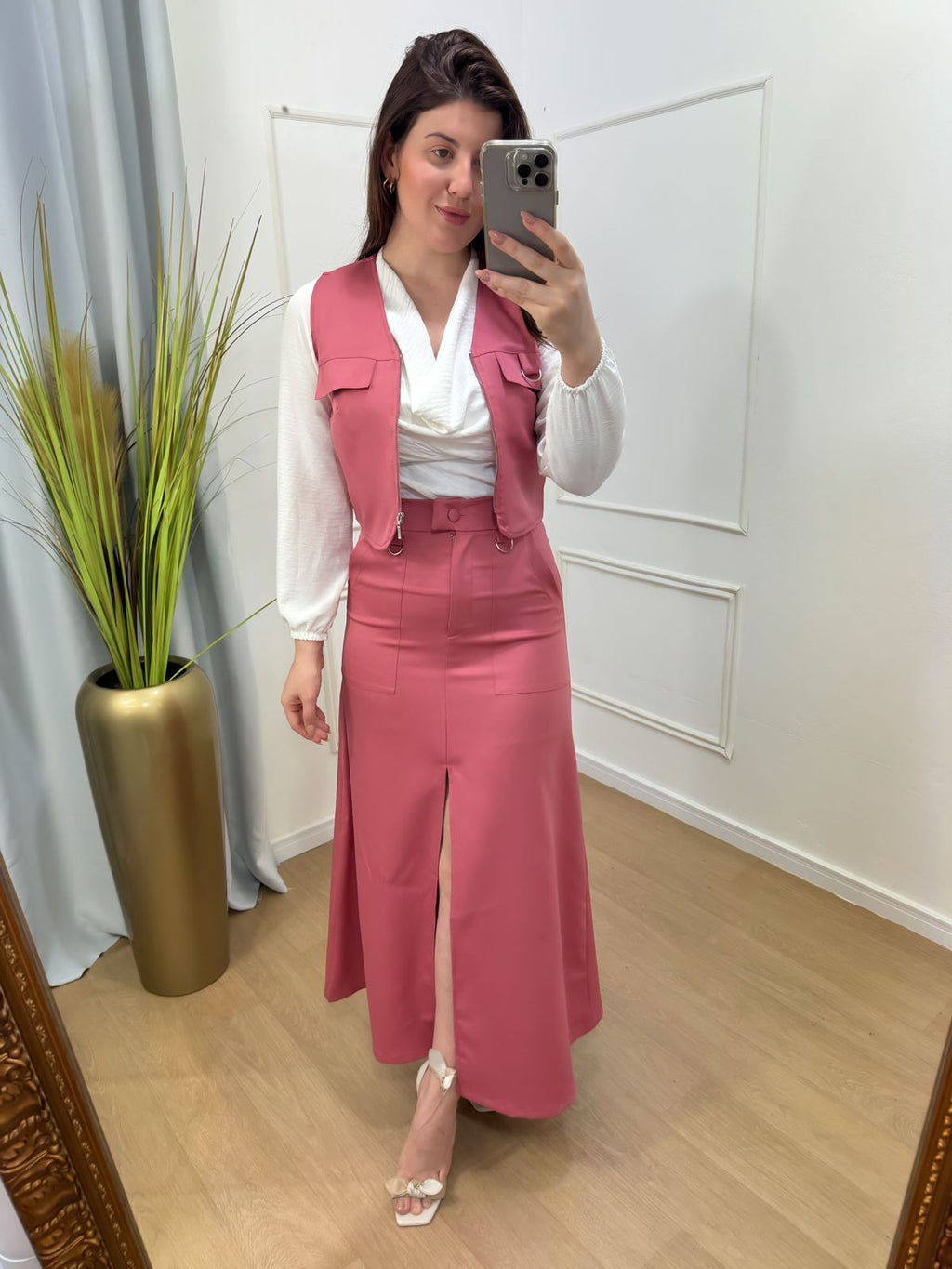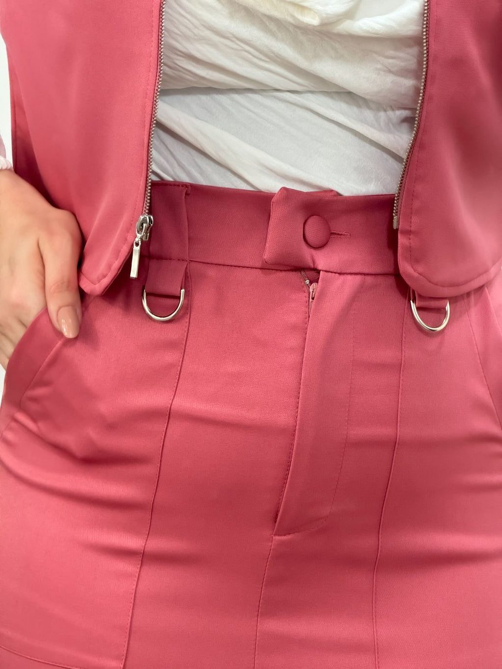 Descrição: conjunto saia e colete na alfaitaria premium , possui bolso fenda frontal.