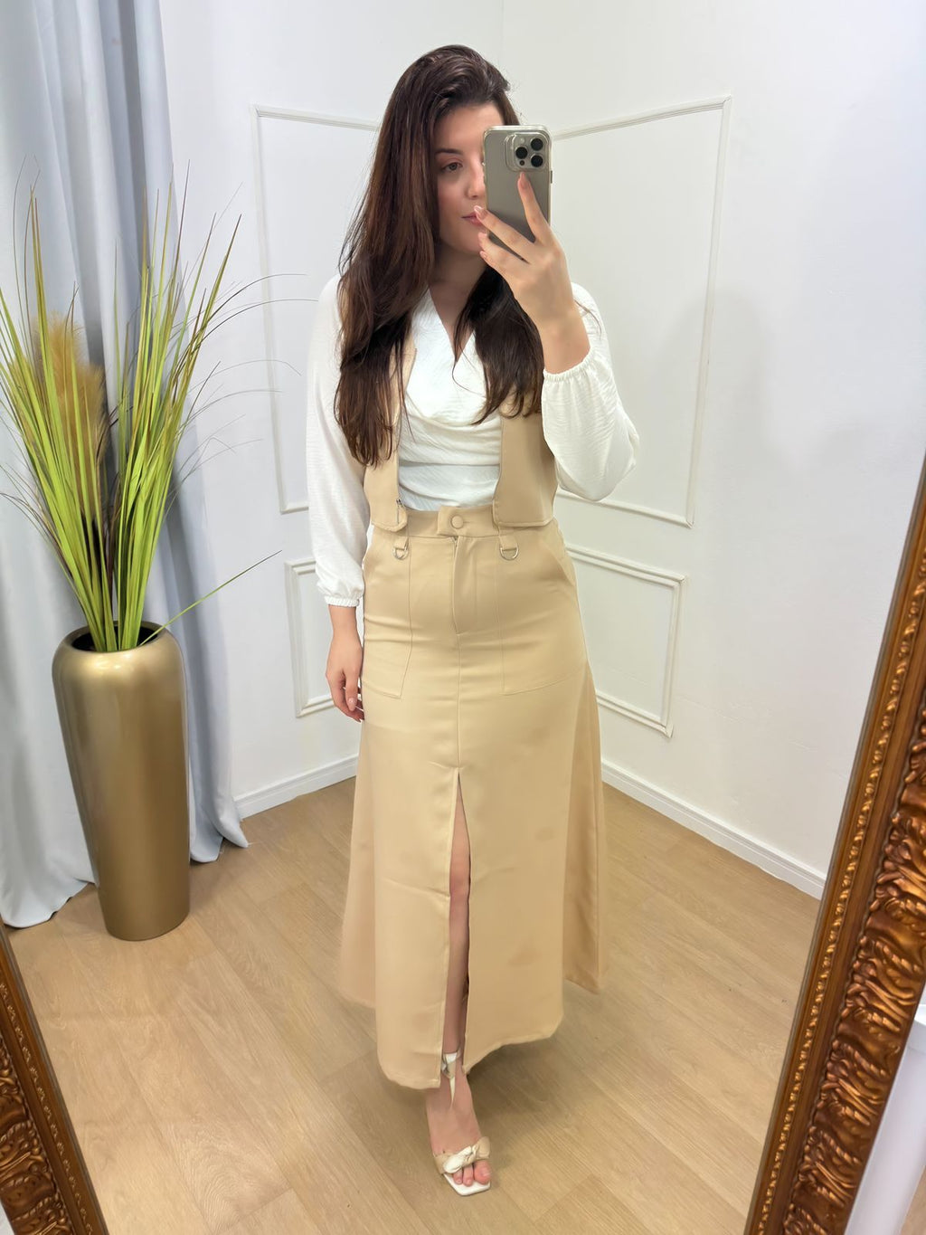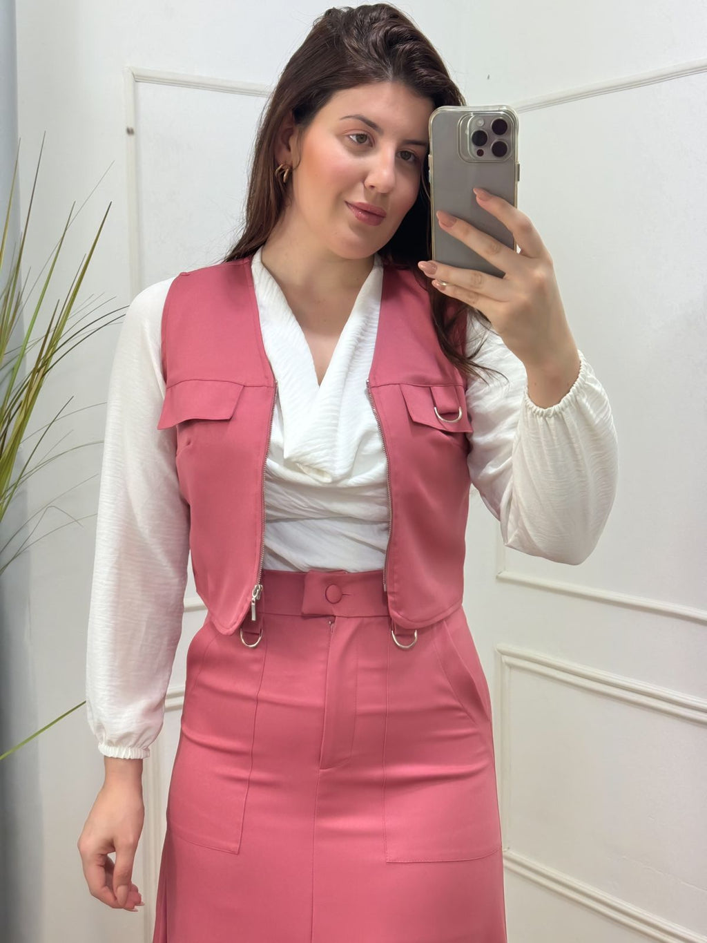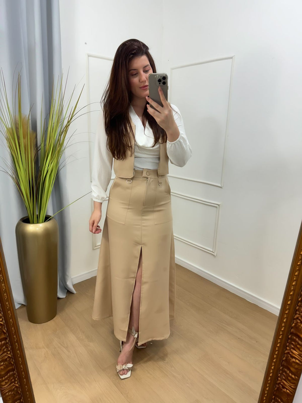 Descrição: conjunto saia e colete na alfaitaria premium , possui bolso fenda frontal.