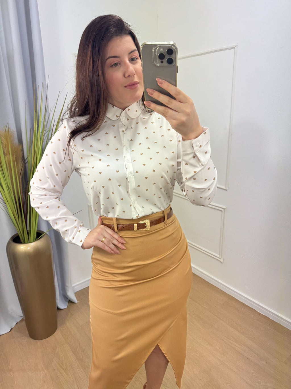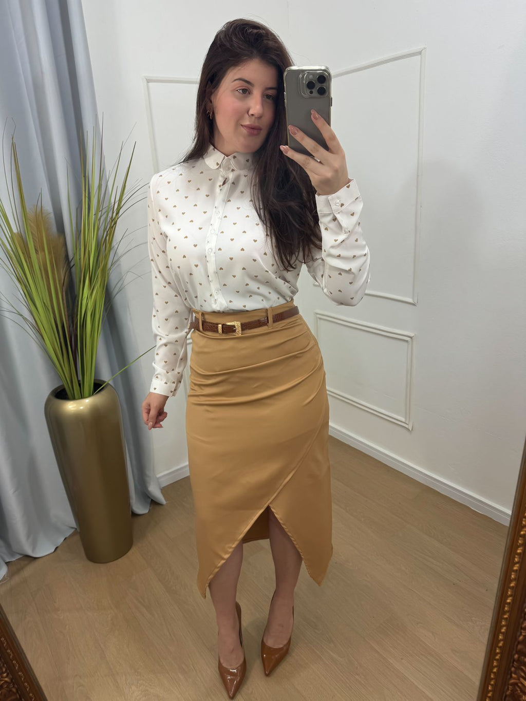 Descrição: saia na alfaitaria possui zíper na lateral e acompanha cinto na cor ( preta)