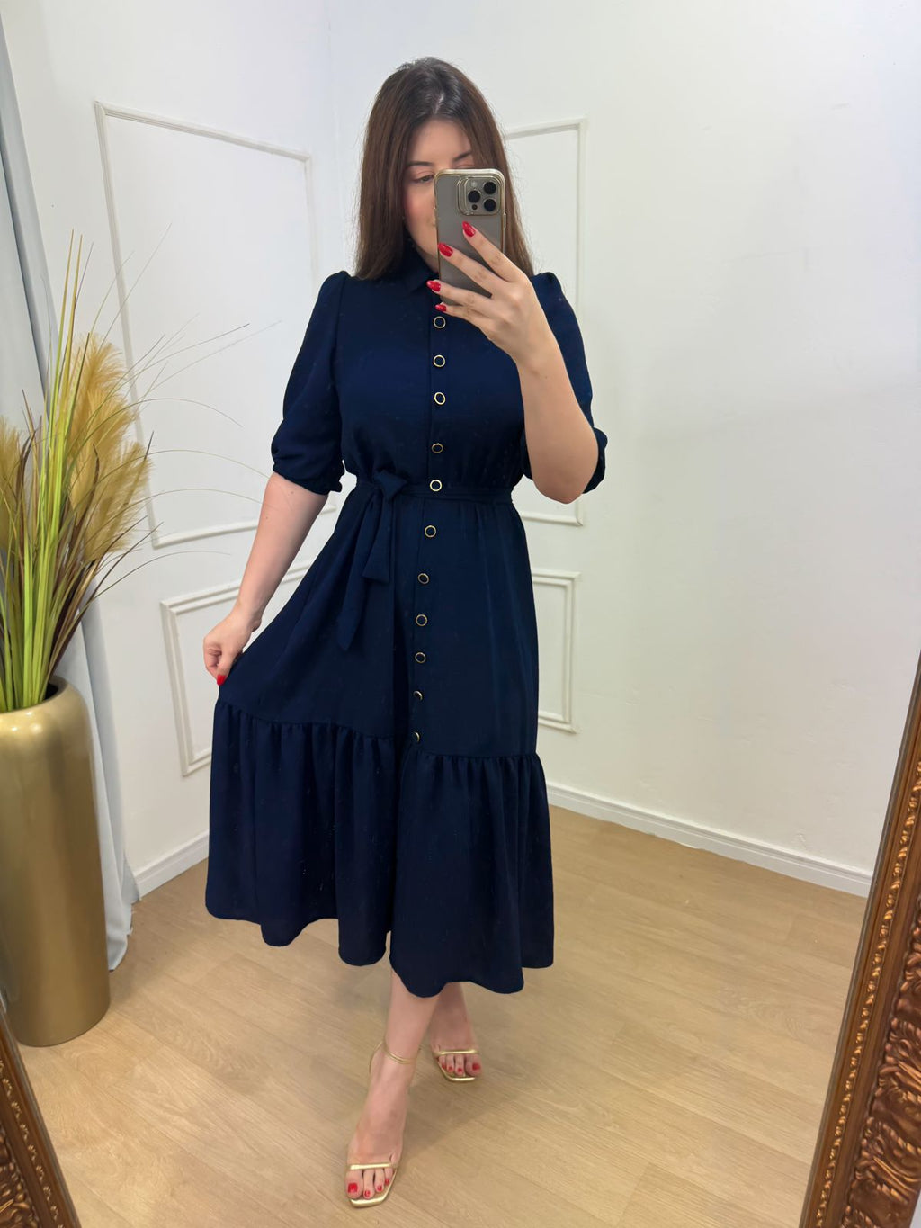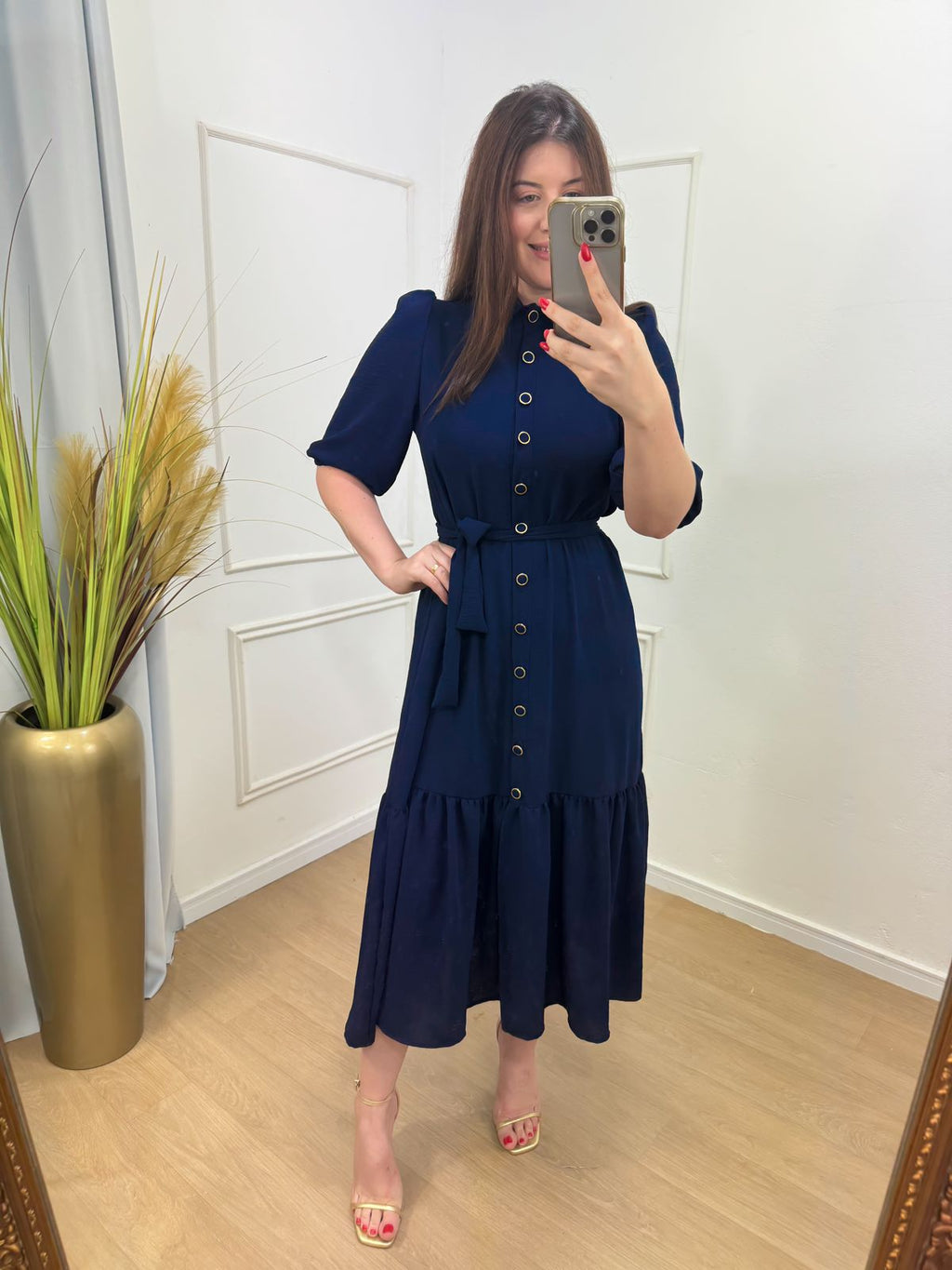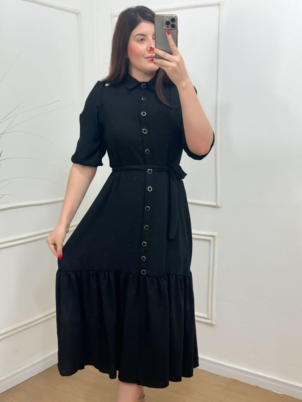 Chemise no crepe alfaitaria zero transparência botões dourado, acompanha faixa.