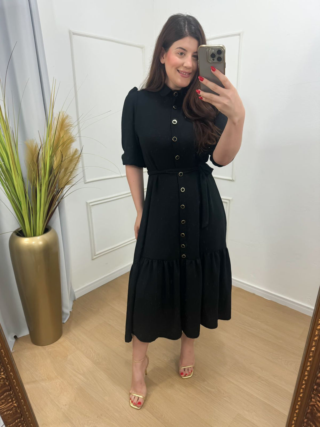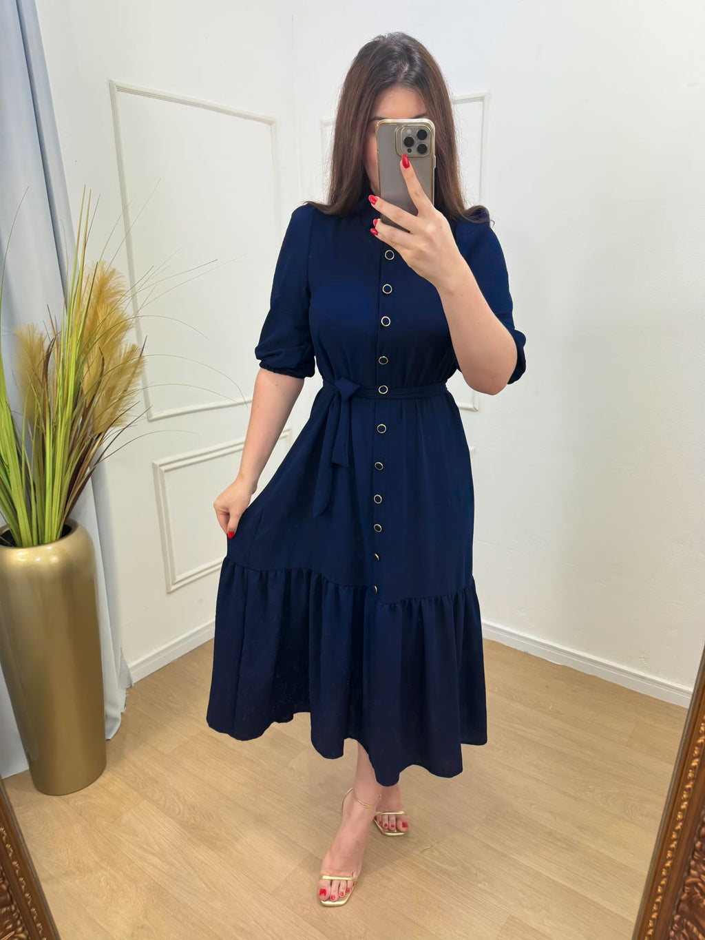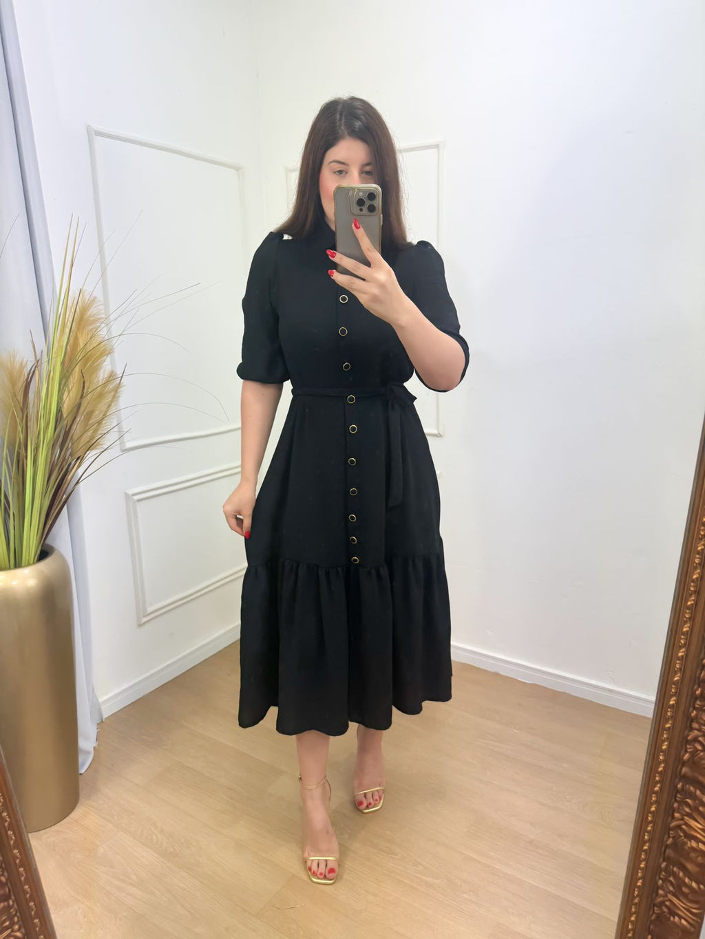Chemise no crepe alfaitaria zero transparência botões dourado, acompanha faixa.