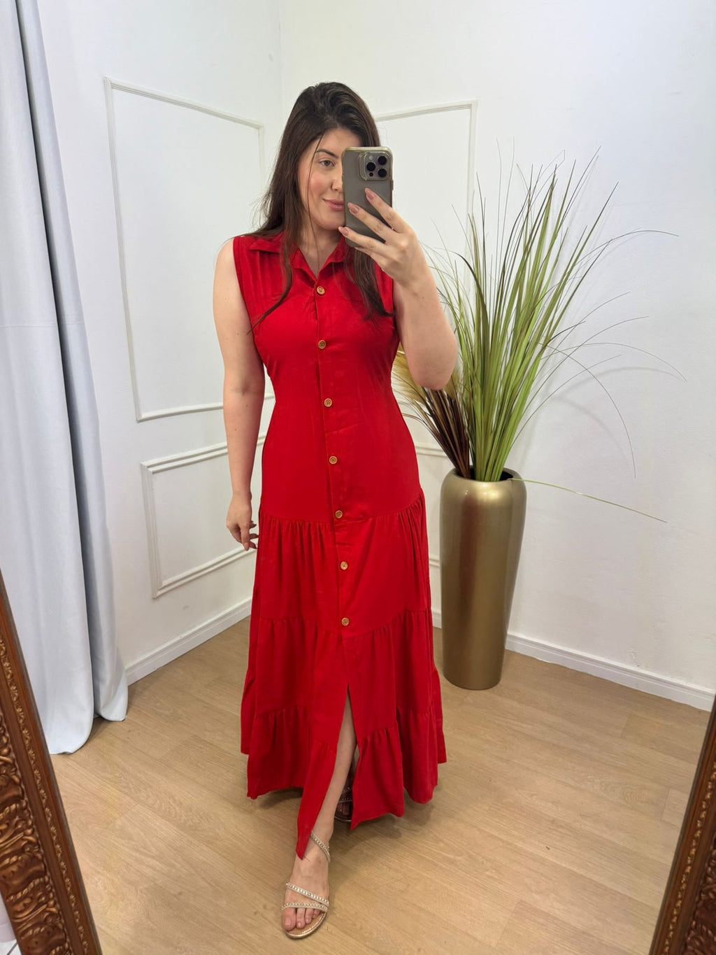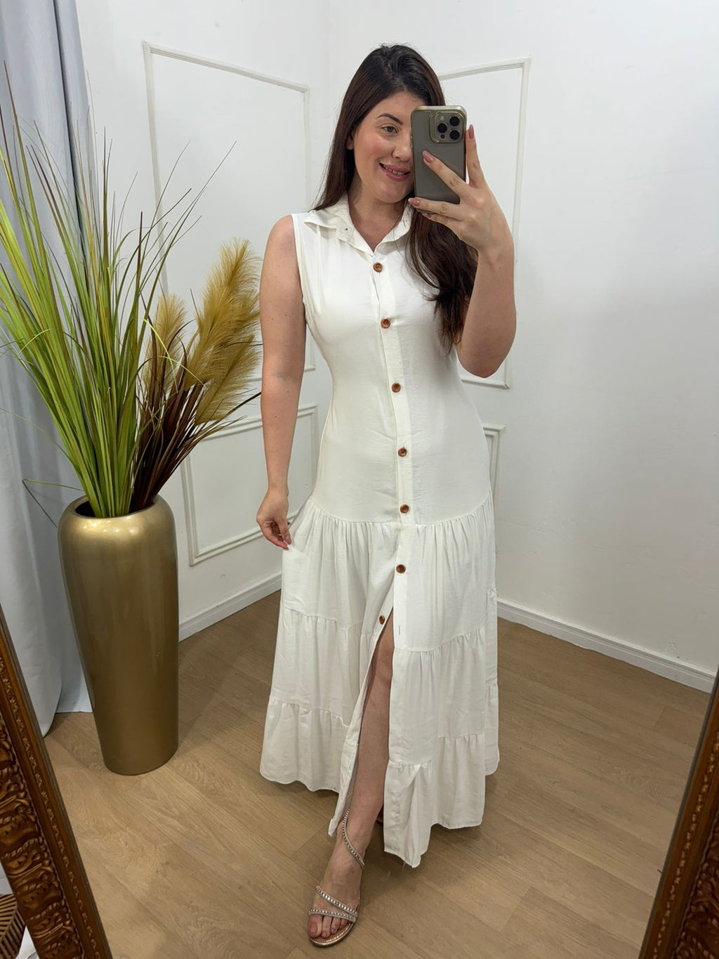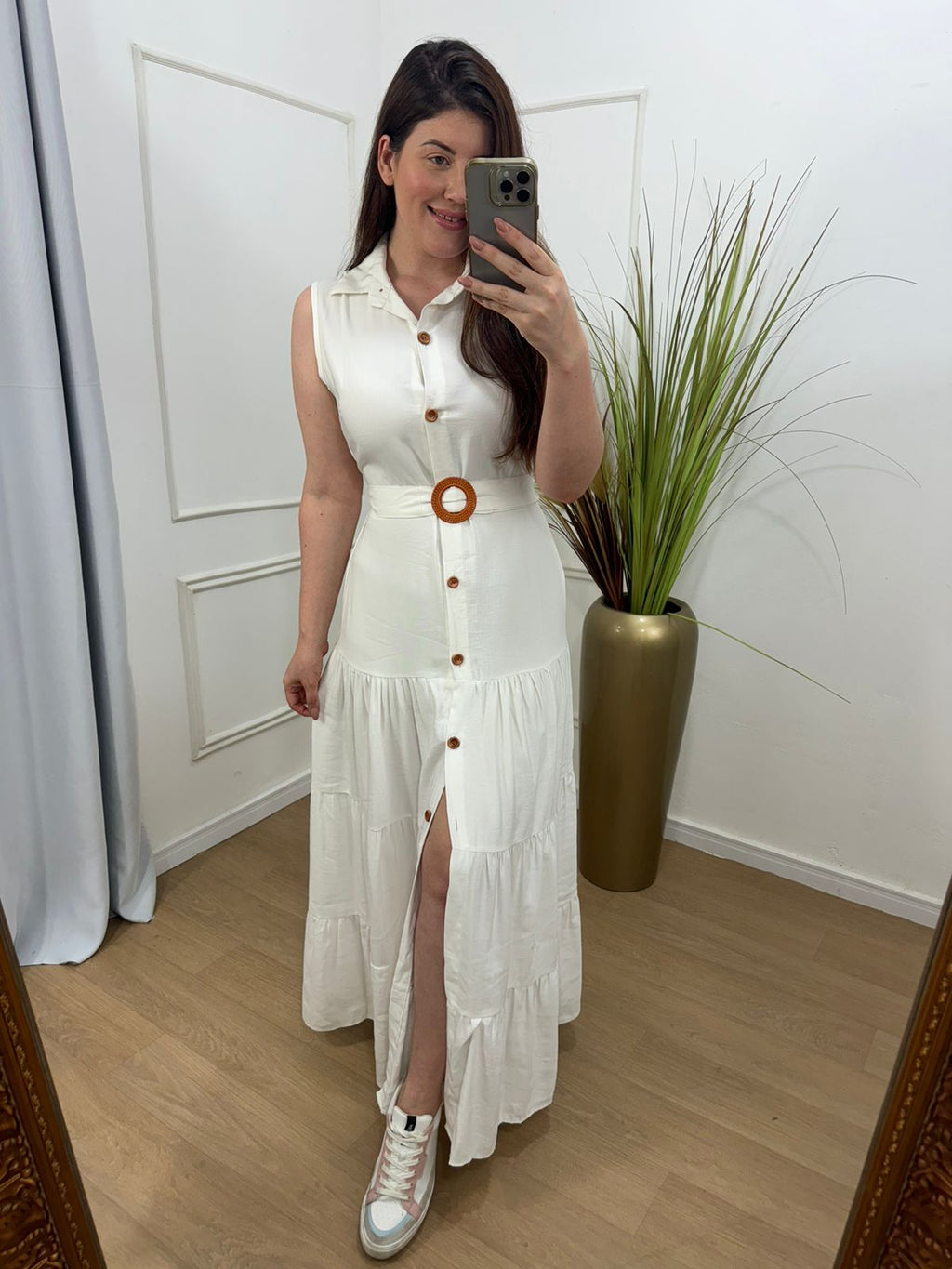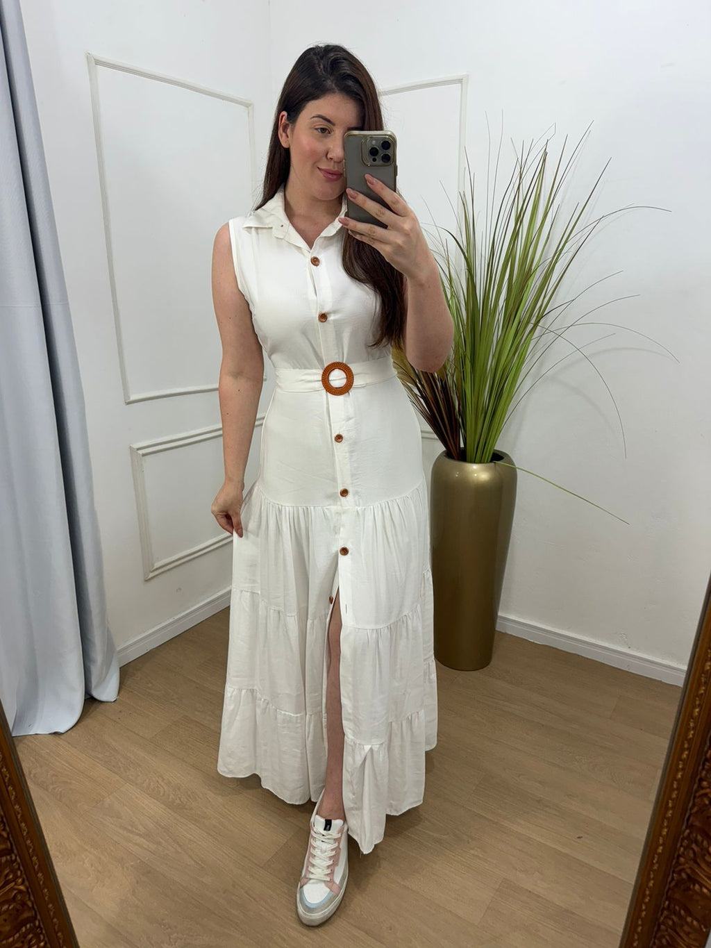 Vestido linho encorpado em botões acompanha cinto , elástico nas costas uma de moldagem perfeita.