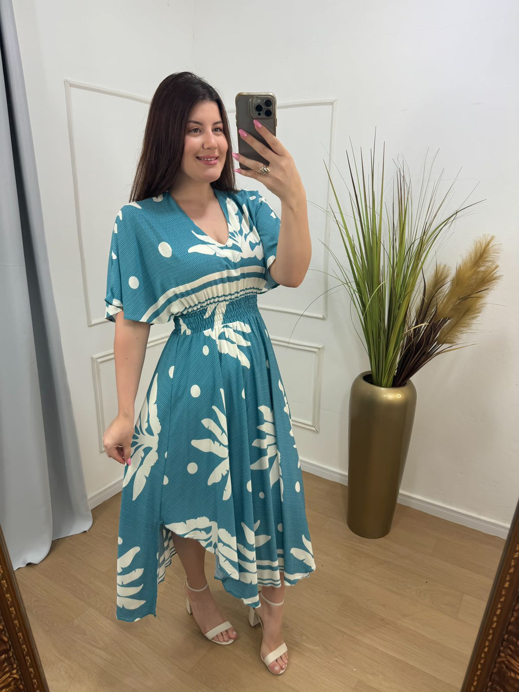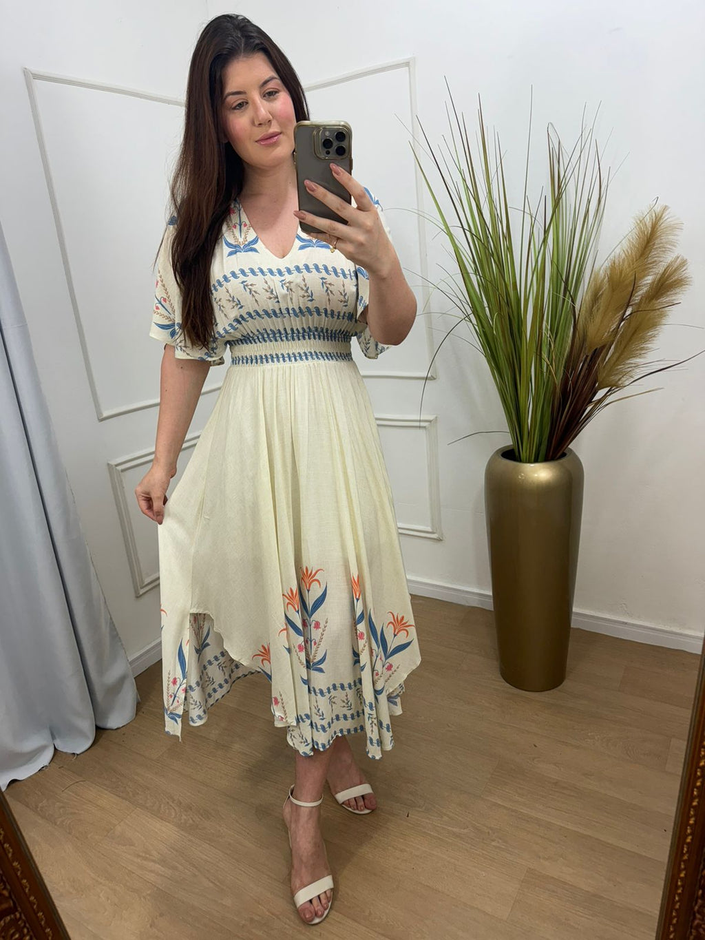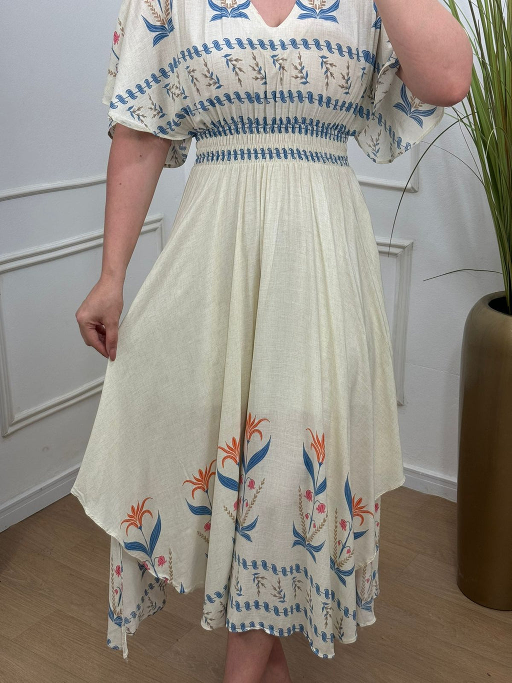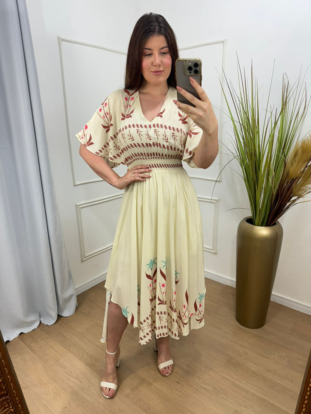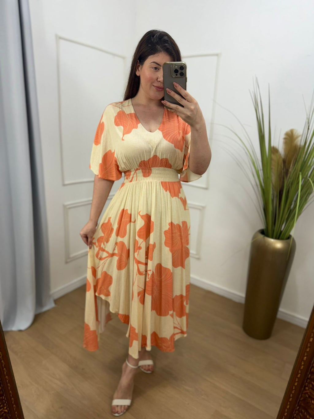Descrição: vestido no viscolinho assimétrico lastex , possui forro.
