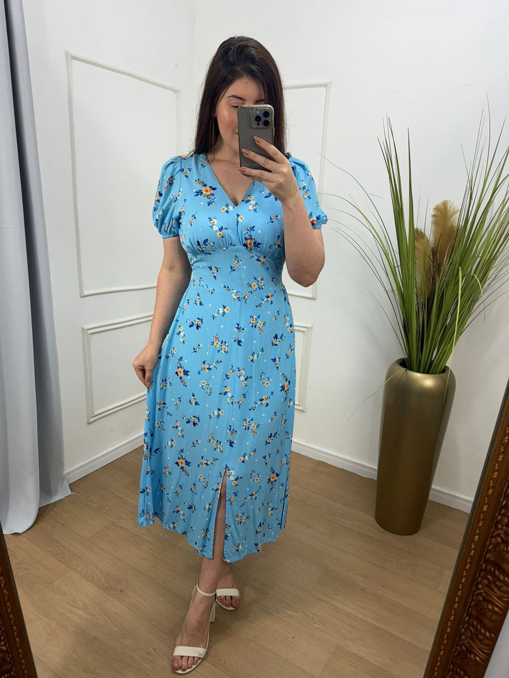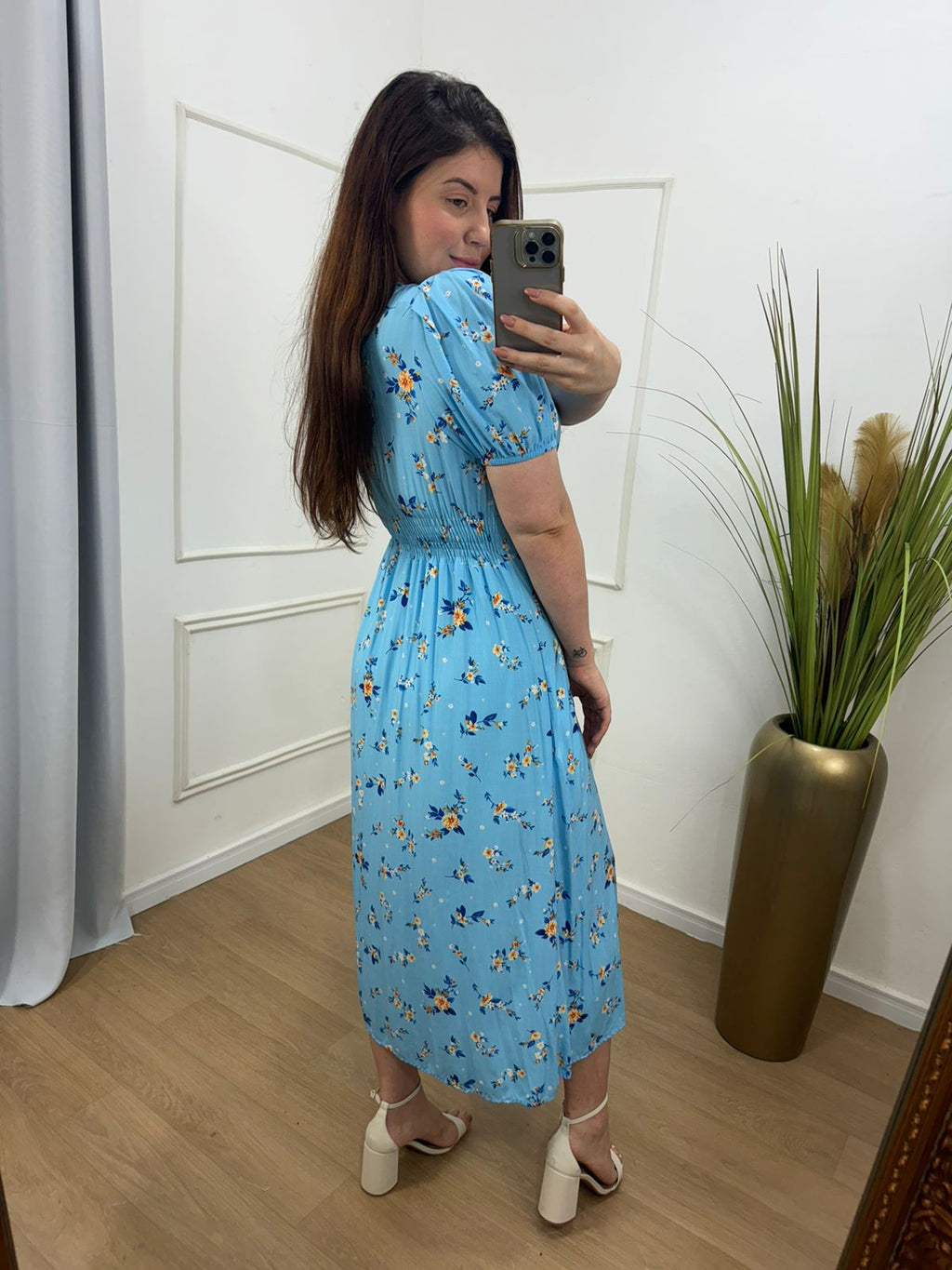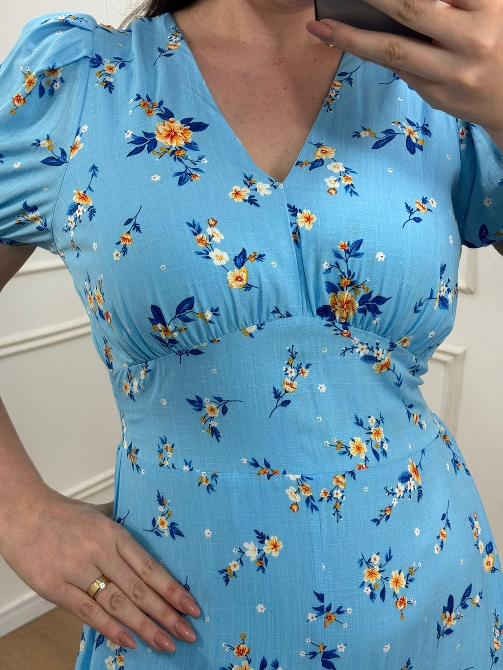 Vestido no viscolinho forrado manga com elástico, lastex na cintura, fenda frontal abaixo do joelho modelagem perfeita.