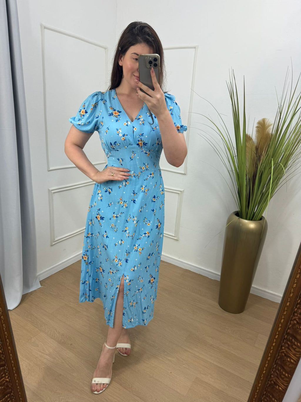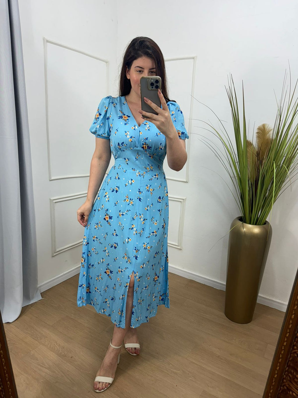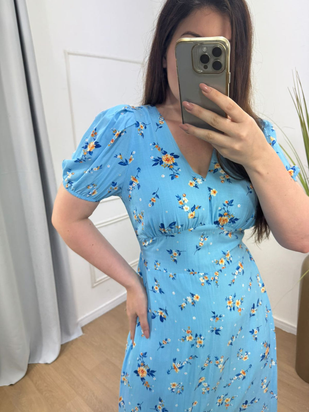 Vestido no viscolinho forrado manga com elástico, lastex na cintura, fenda frontal abaixo do joelho modelagem perfeita.
