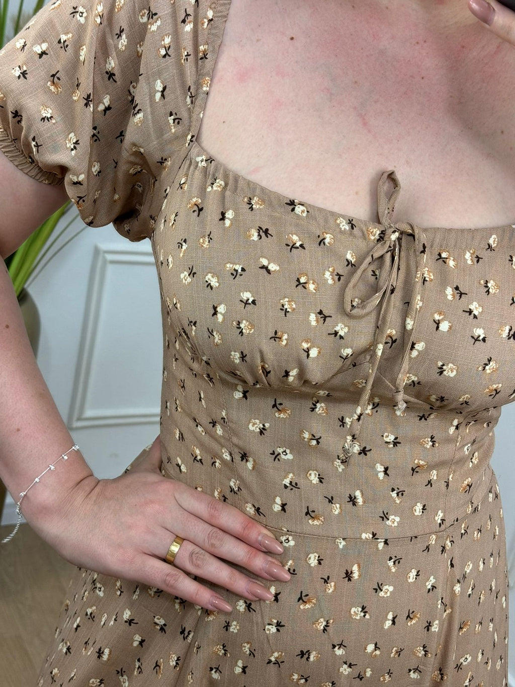 Descrição: vestido evasê forrado com fenda , possui lastex na parte das costas e amarração, possui elástico na parte de cima ( da de amamentar) não possui bojo.