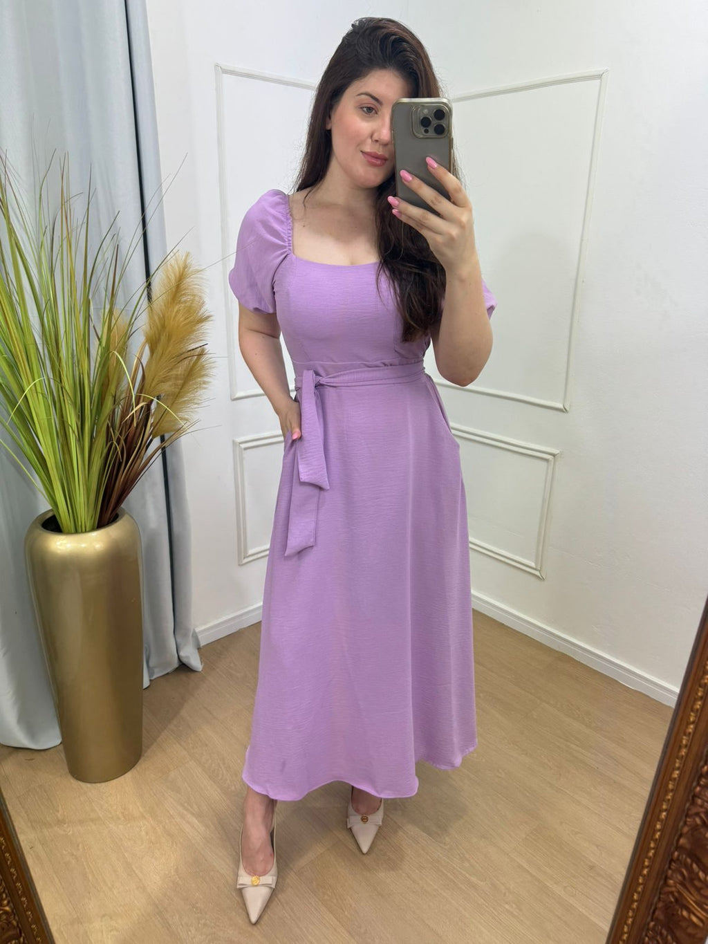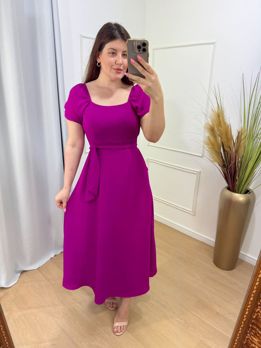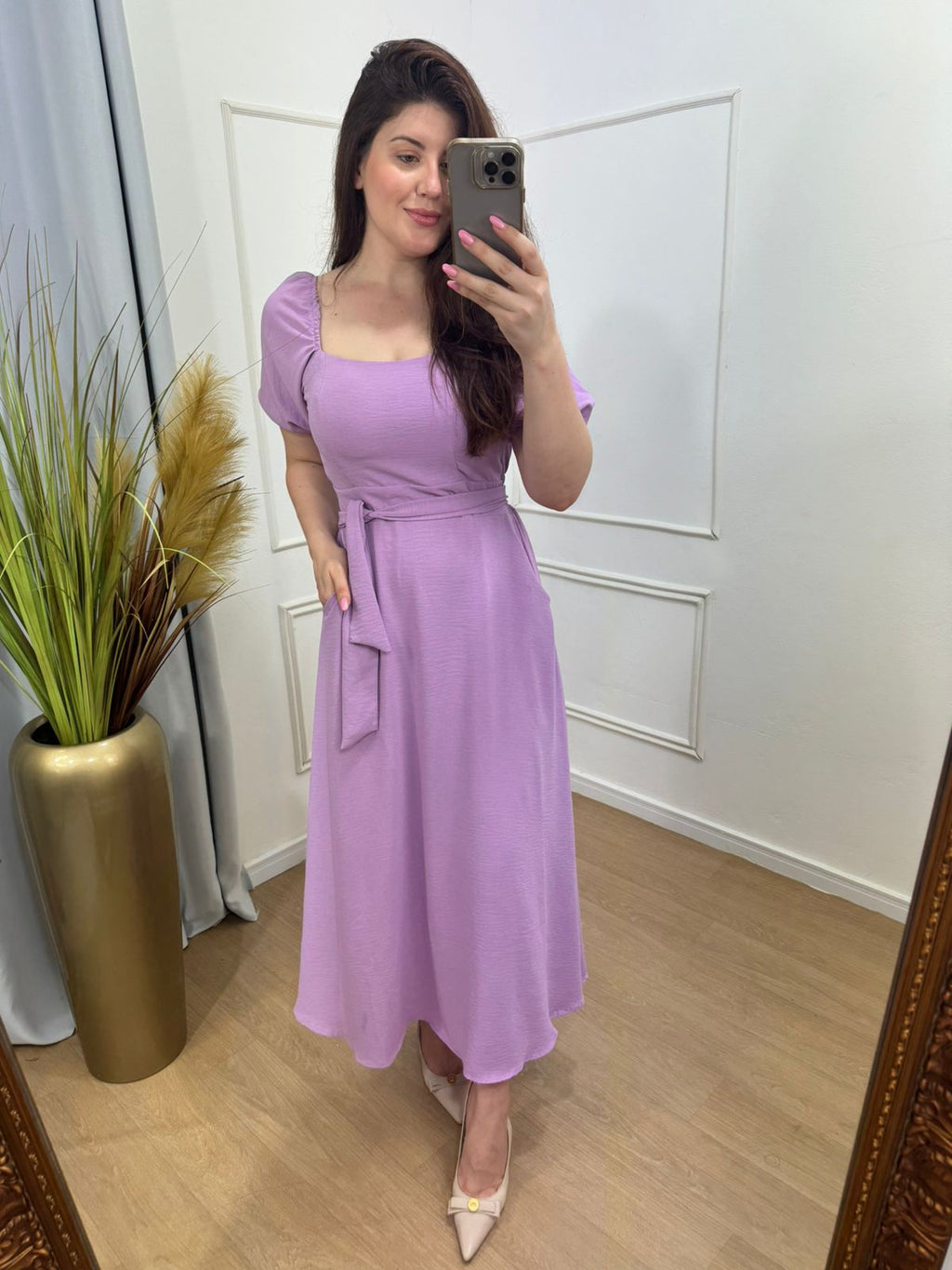 vestido no crepe forrado, possui bojo , lastex nas costas, elástico nas mangas ( quem amamenta a modelagem fica perfeita) possui bolsos, cós na cintura e acompanha faixa.
