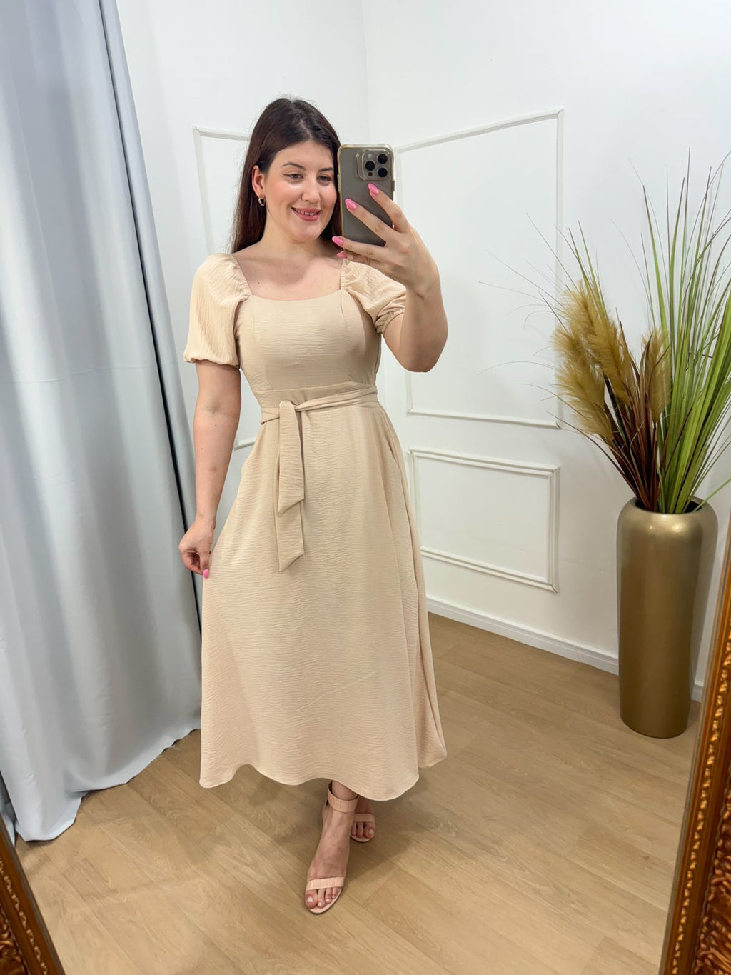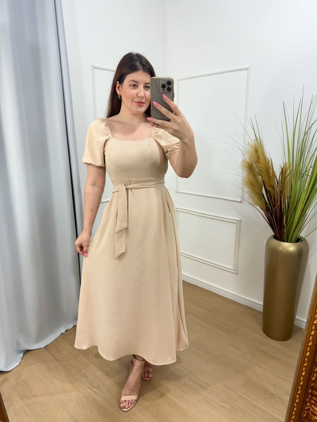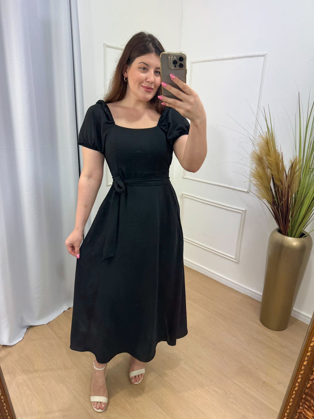 vestido no crepe forrado, possui bojo , lastex nas costas, elástico nas mangas ( quem amamenta a modelagem fica perfeita) possui bolsos, cós na cintura e acompanha faixa.