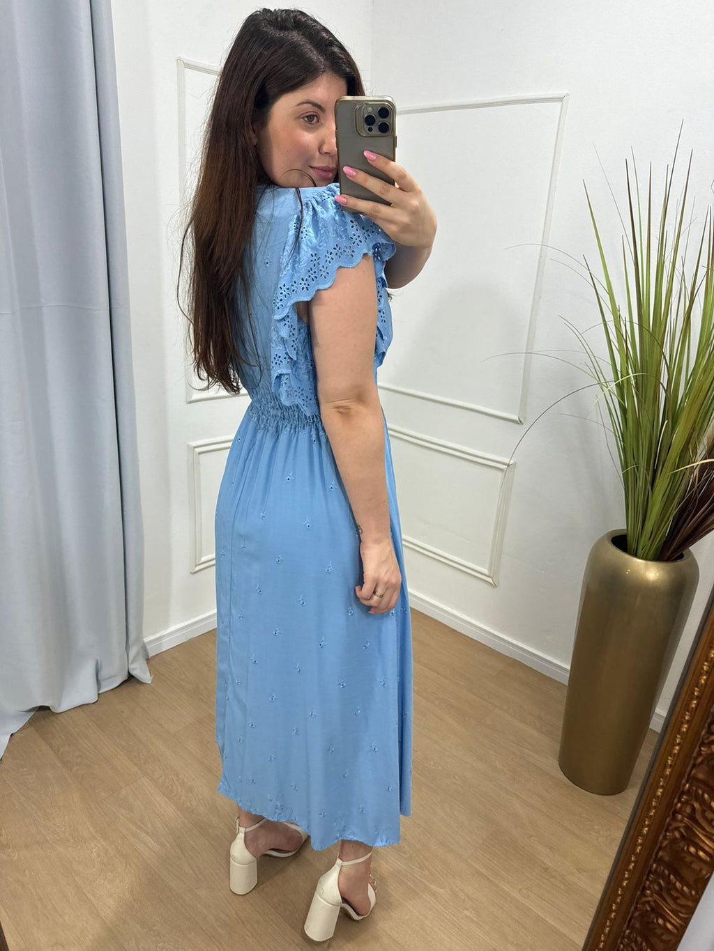 Vestido em lazie bordado sem elastano , forrado com manga lua, lastex nas costas.