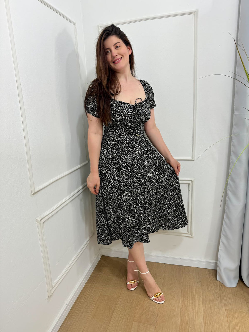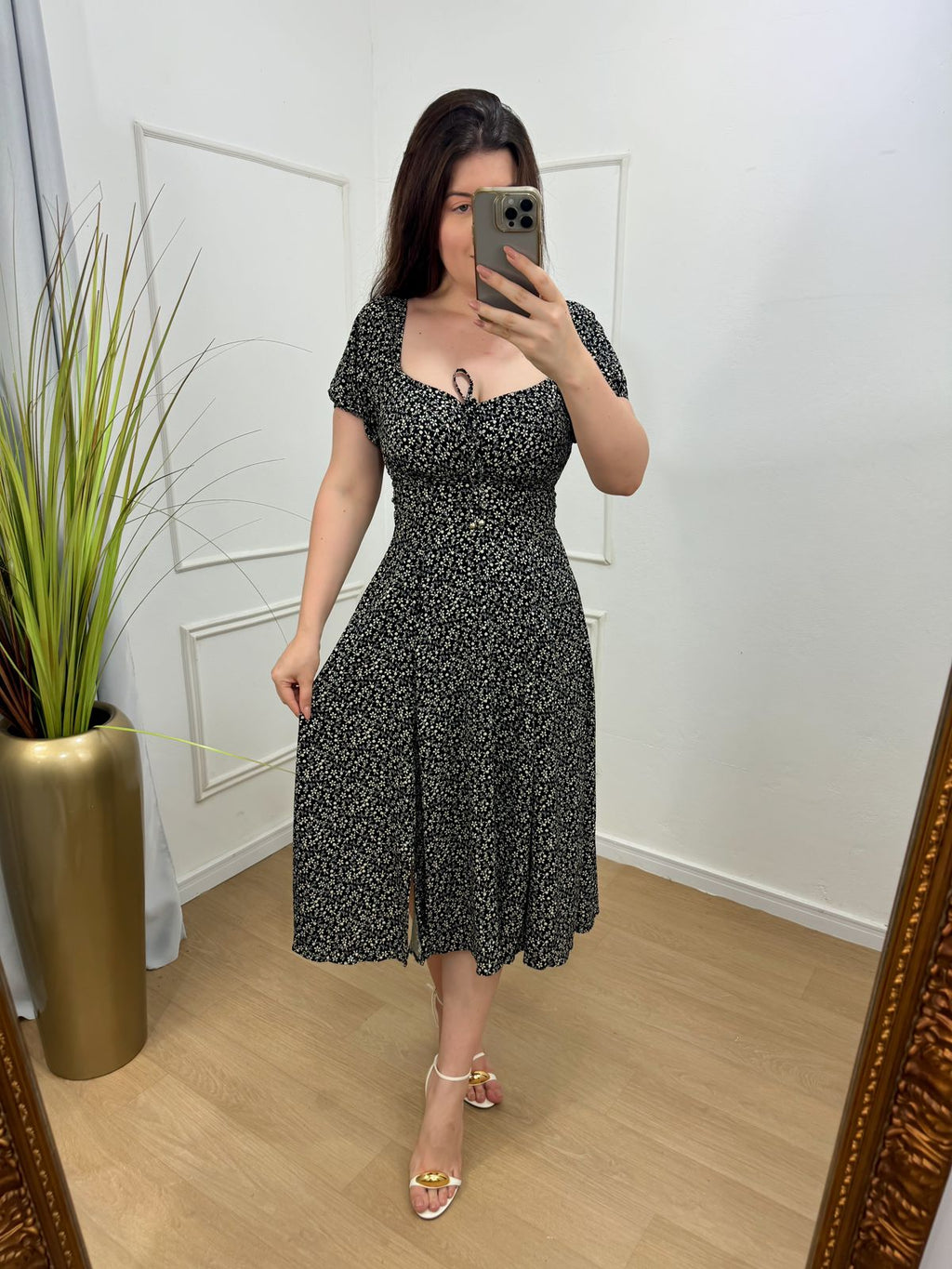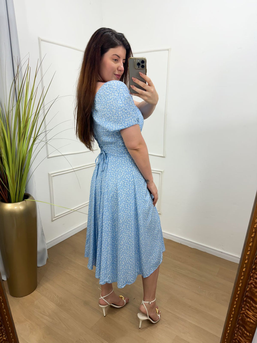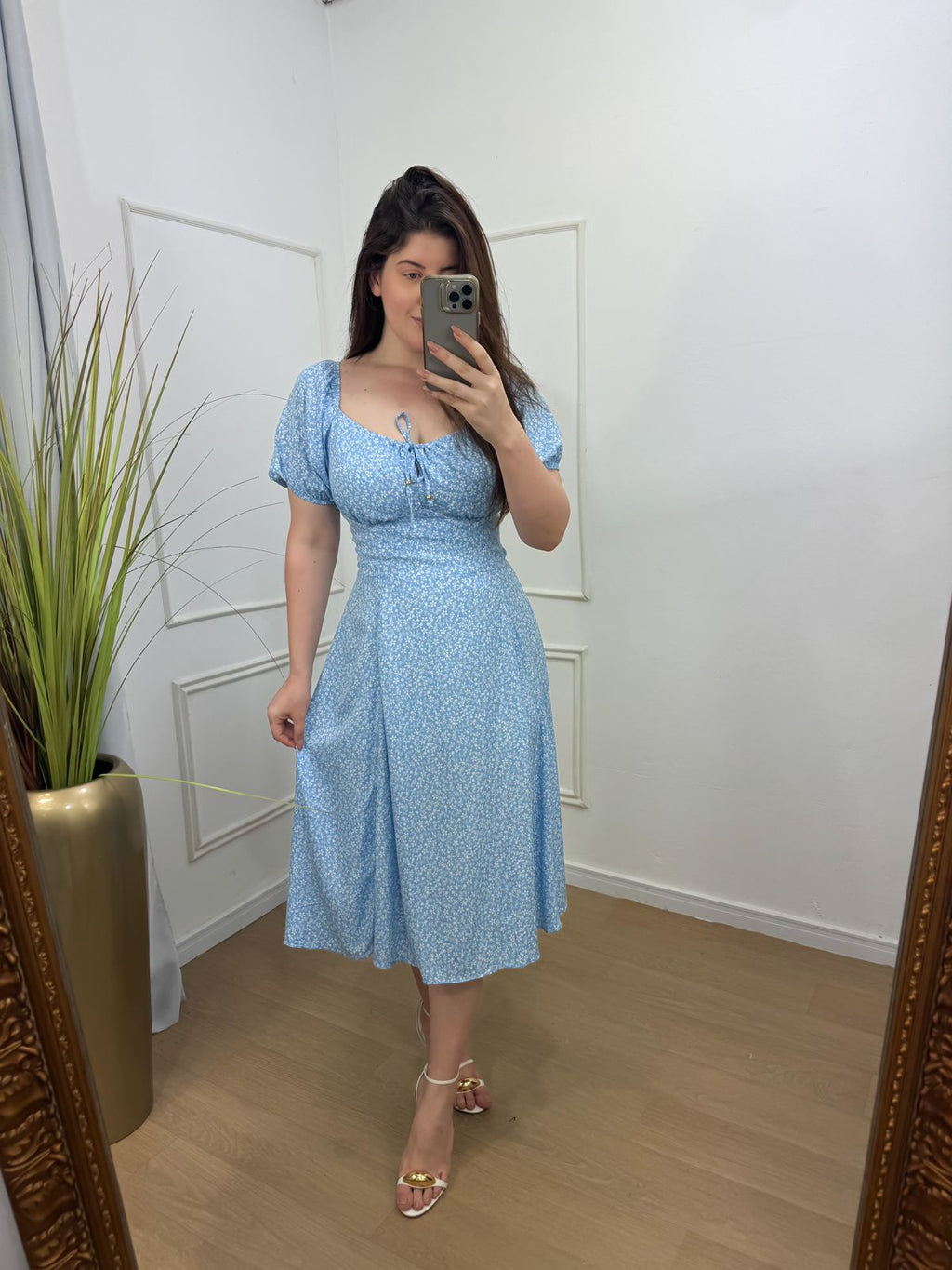 Vestido evasê forrado com fenda , possui lastex na parte das costas e amarração, possui elástico na parte de cima ( da de amamentar) não possui bojo.