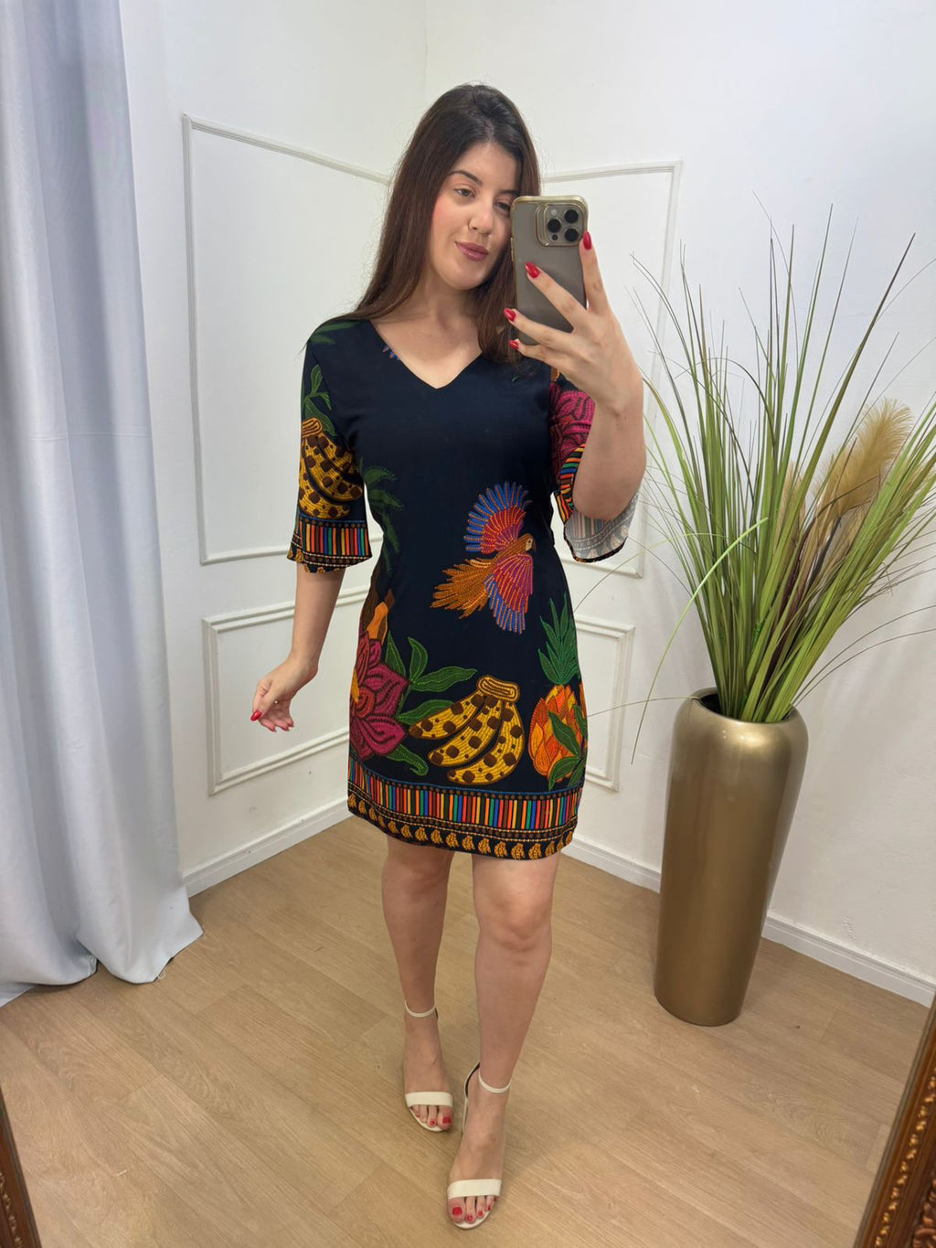 Vestido no visco linho todo forrado, modelagem evasê, elástico na parte das costas trazendo conforto e acinturando.